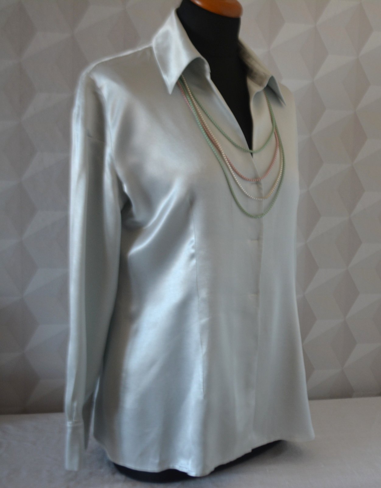 Blúzka je svetlučkošedá, striebristý, trošku lesklý odlesk.
