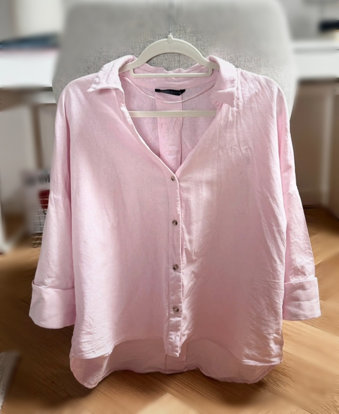 Baby pink ľanová košeľa. Oversize. Bez poškodení.