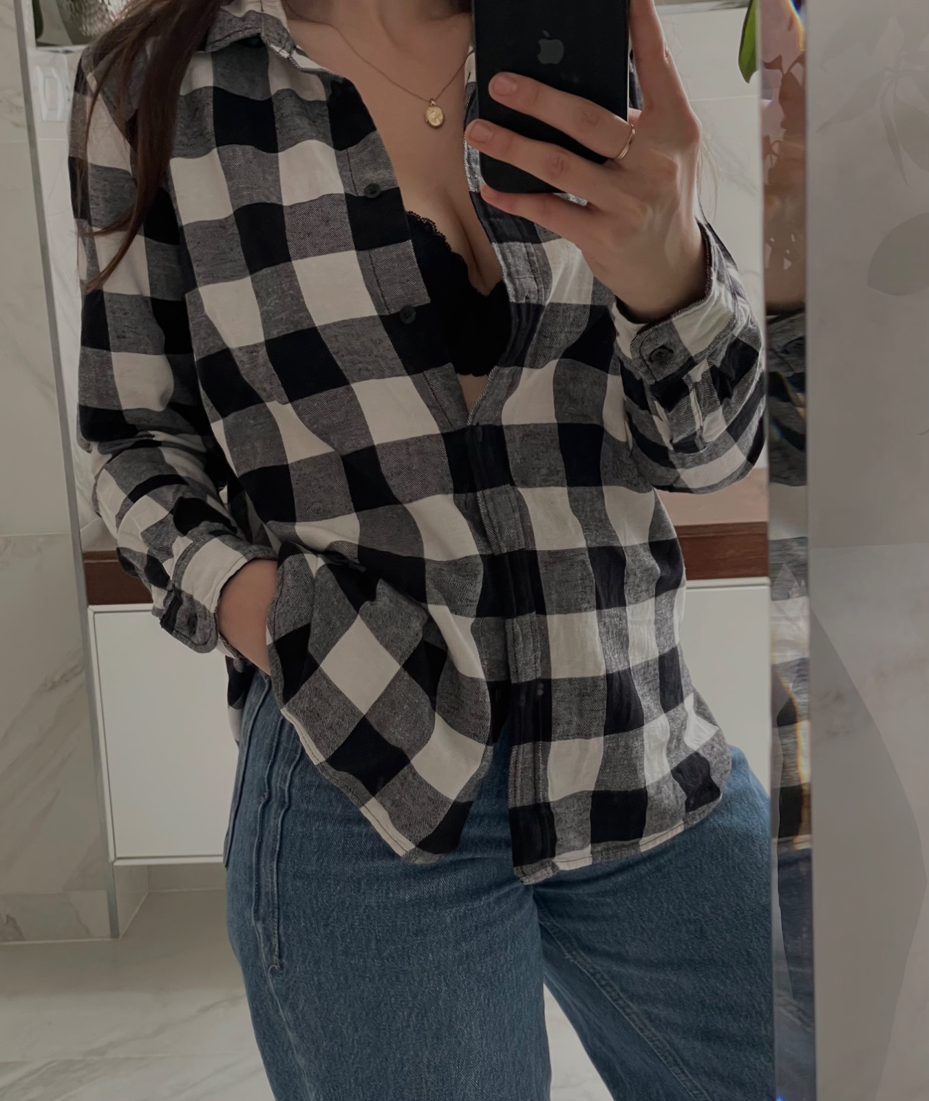 #uniqlo #checkshirt #plaidshirt #blackandwhite #casualwear #womensfashion #streetstyle #smartcasual #overshirt