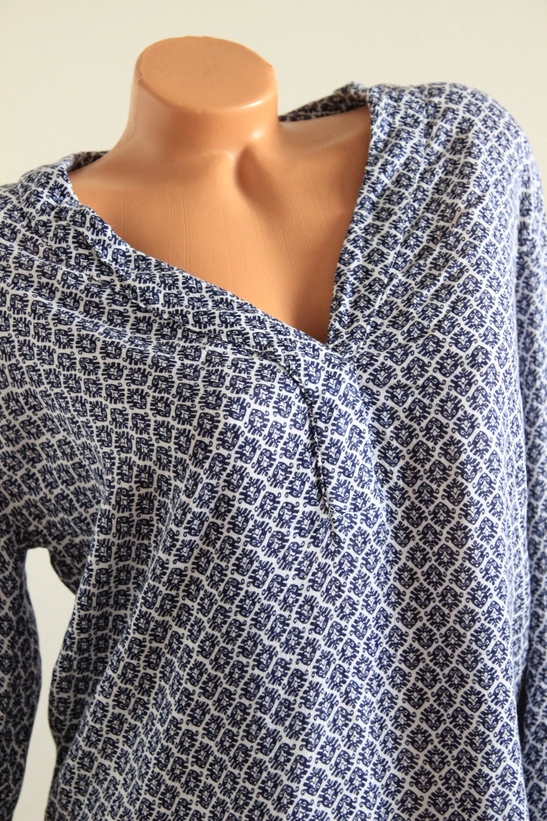 Modro biela vzorovaná blúzka, veľkosť L, značka H&M, top stav. Materiál je 100%viskóza.