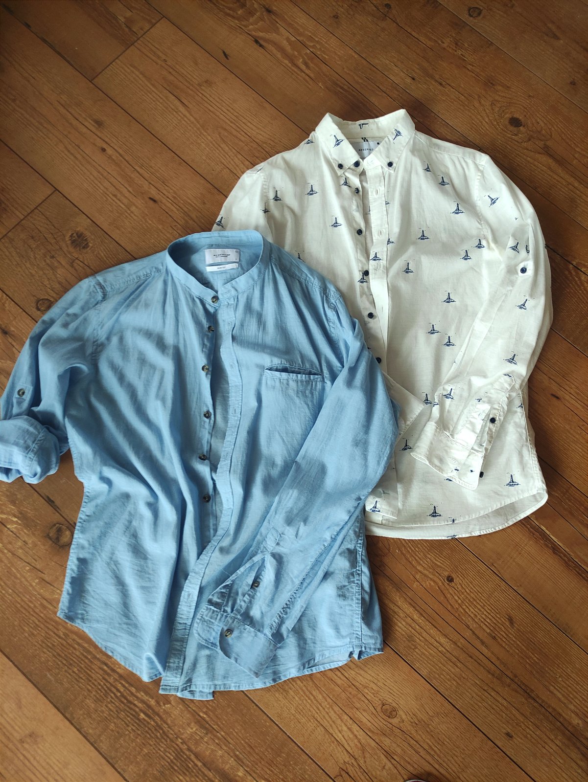 Kvalitná biela košeľa so zaujímavým modrým vzorom Ozdobné detaily - hnedé gombíky - imitácia dreva, červený lem Top stav Rozmery: Dĺžka: 78 Šírka: 54 (pás)-59 (pazuchy) Šírka ramien: 47 Rukáv: 65...