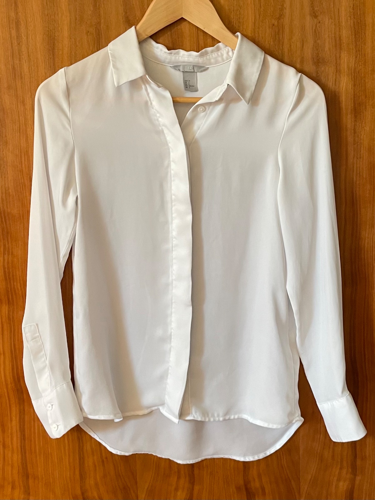 H&M Biela voľná šifónová košeľa s dlhým rukávom