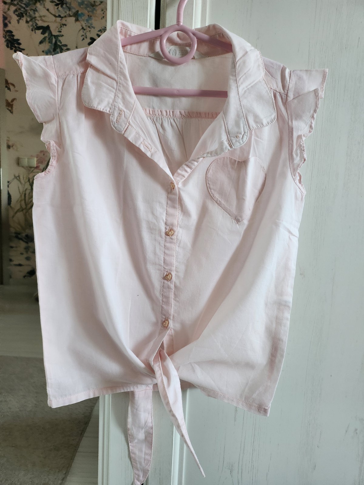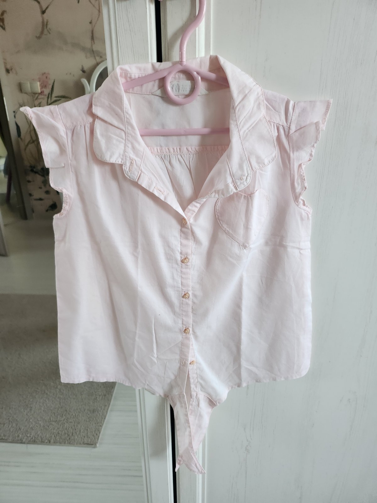Krajšia farba ako na fotke, asi raz oblečená blúzka. Na spodku sa dá zaviazať.