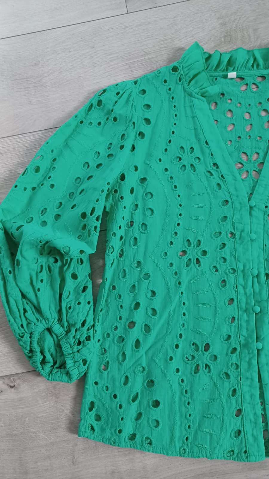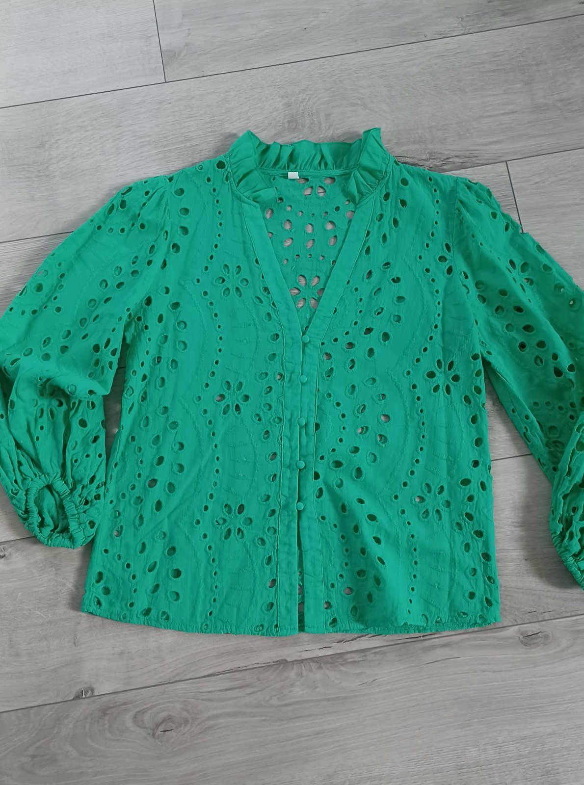 Predám dámsku blúzku veľkosť.M dlžka:61cm,šírka cez prsia:48,5cm krásna hráškovo zelená,100% bavlna a 100% stav.