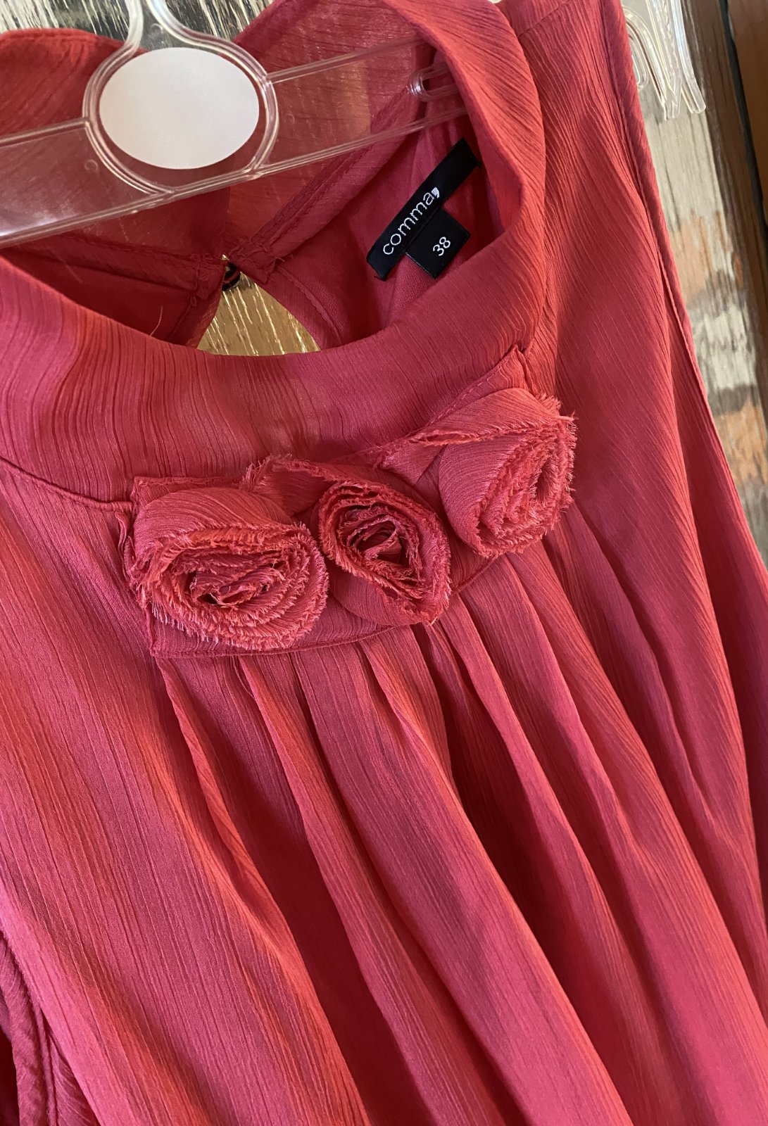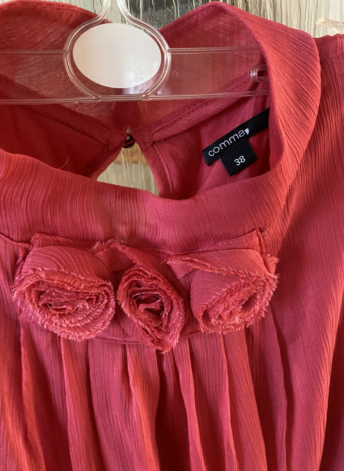 Podšitý top - blúzka zn. comma (drahá značka) v. 38 - S, pekne prepracovaná, kopa detailov - viď detail, farba ako na foto, materiál: vrchná časť - pokrčená: 100% polyester, podšívka: 94% modal - viskóza, 6% elastan, minimálne nosená, bez poškodenia. Miery merané v kľude - je pružná, nazberkaná, povolí: dĺžka od krku dolu: 64cm, šírka v podpazuší: 47cm, šírka dolu: 65cmx2 - je nazberkaná, povolí.