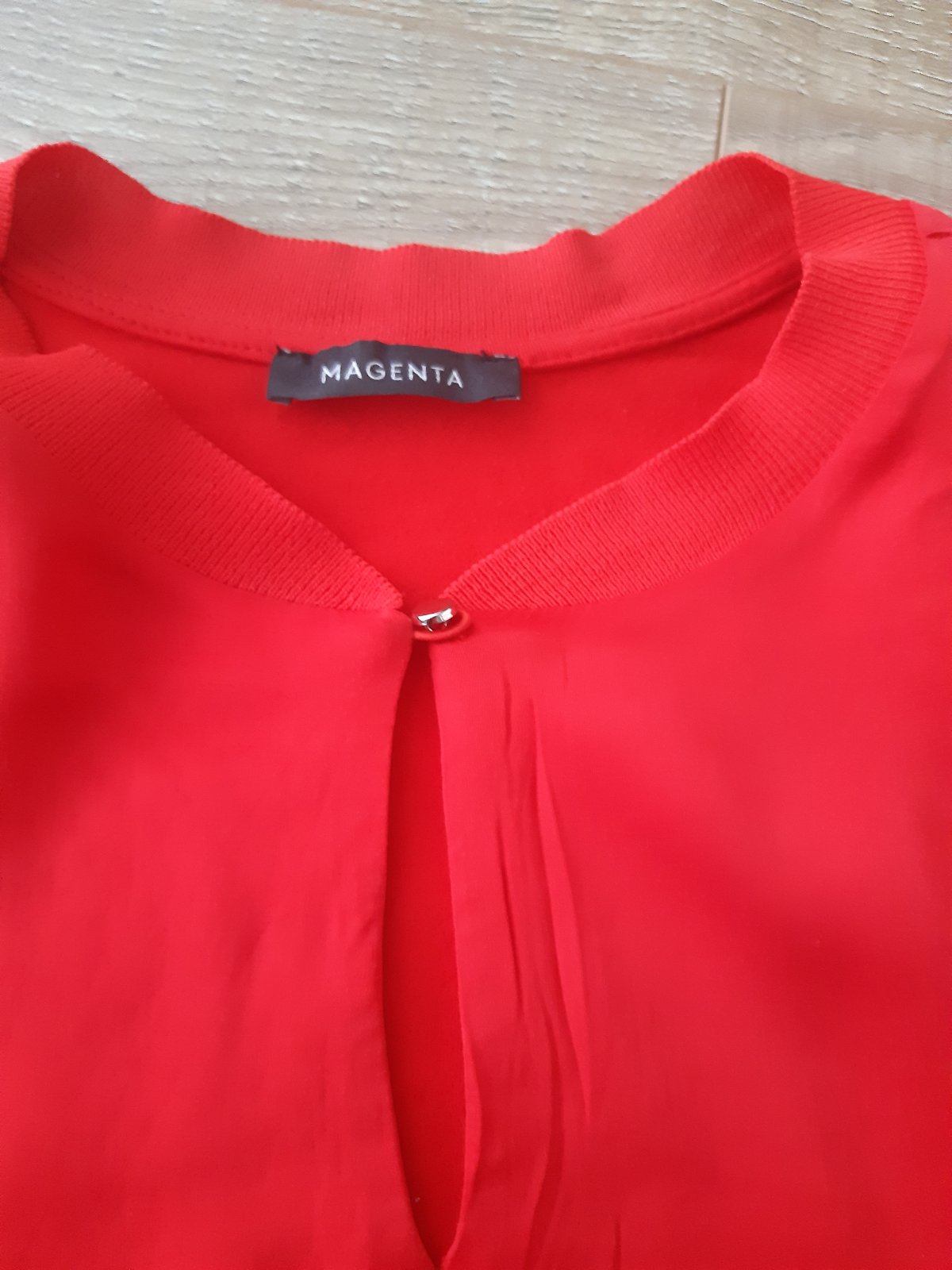 Predám krásnu kvalitnú blúzku zn.Magenta.Sedí na S,M,možno aj menšie L.Top stav.Farba nádherná červená.Oveľa krajsia ako na foto.