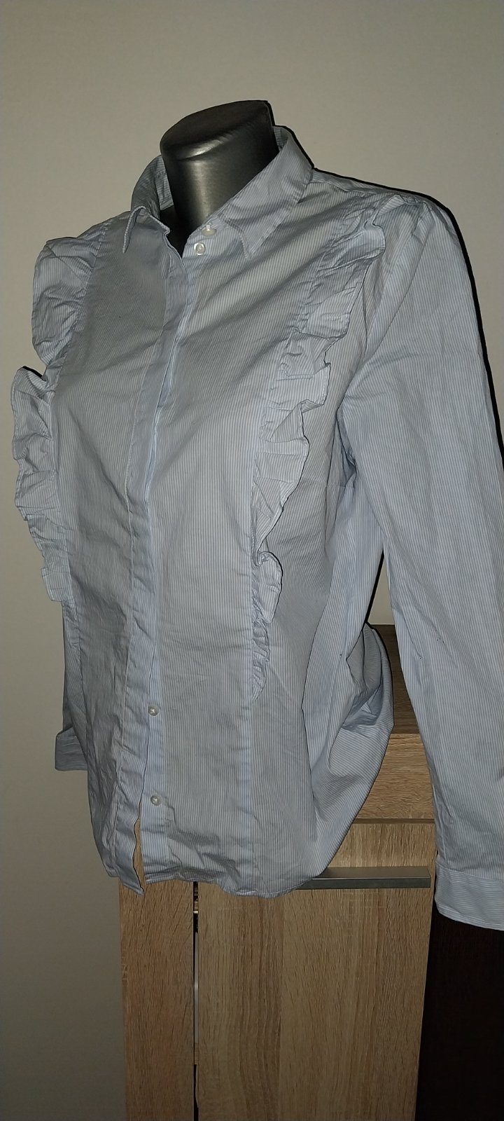 ...pekná ako nová, bielomodrý prúžok...dl.chrbta 67cm, šírka pod paz. 53x2 cm, dl.rukáv od krku 76cm..cena 6€+post...