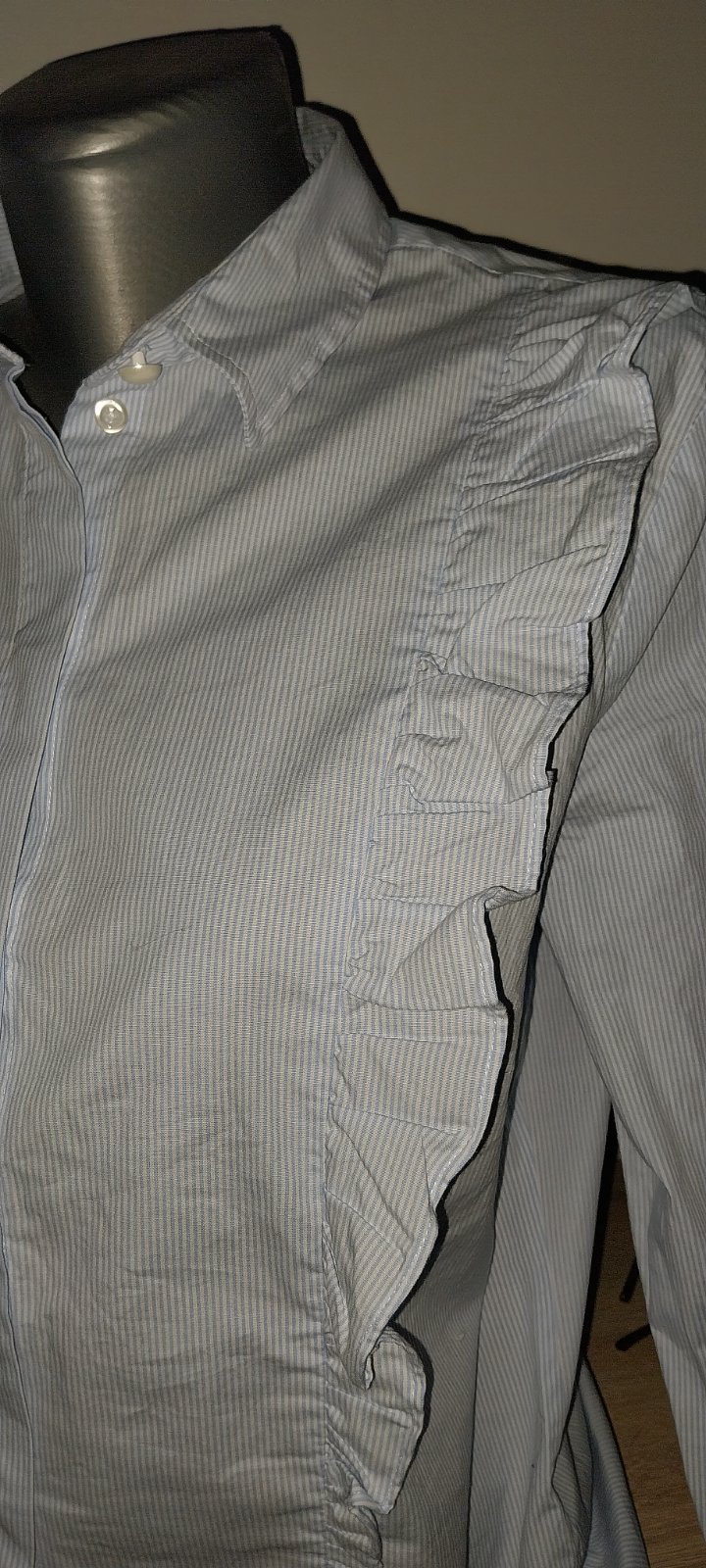 ...pekná ako nová, bielomodrý prúžok...dl.chrbta 67 cm, šírka pod paz.53x2 cm, dl.rukáv od krku 76cm...cena 6€+pošt