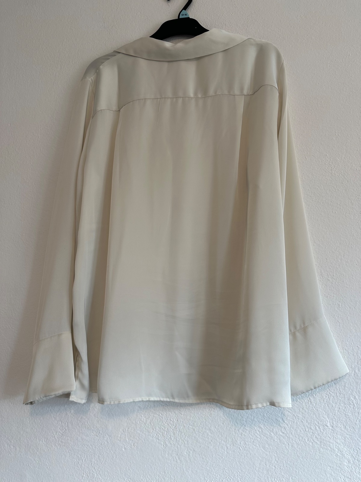 Krémovo čierna vzorovaná košeľa, veľkosť L. Značka H&M. Miery hrudník: 2x58cm dĺžka vpredu: 66cm dĺžka vzadu: 75cm