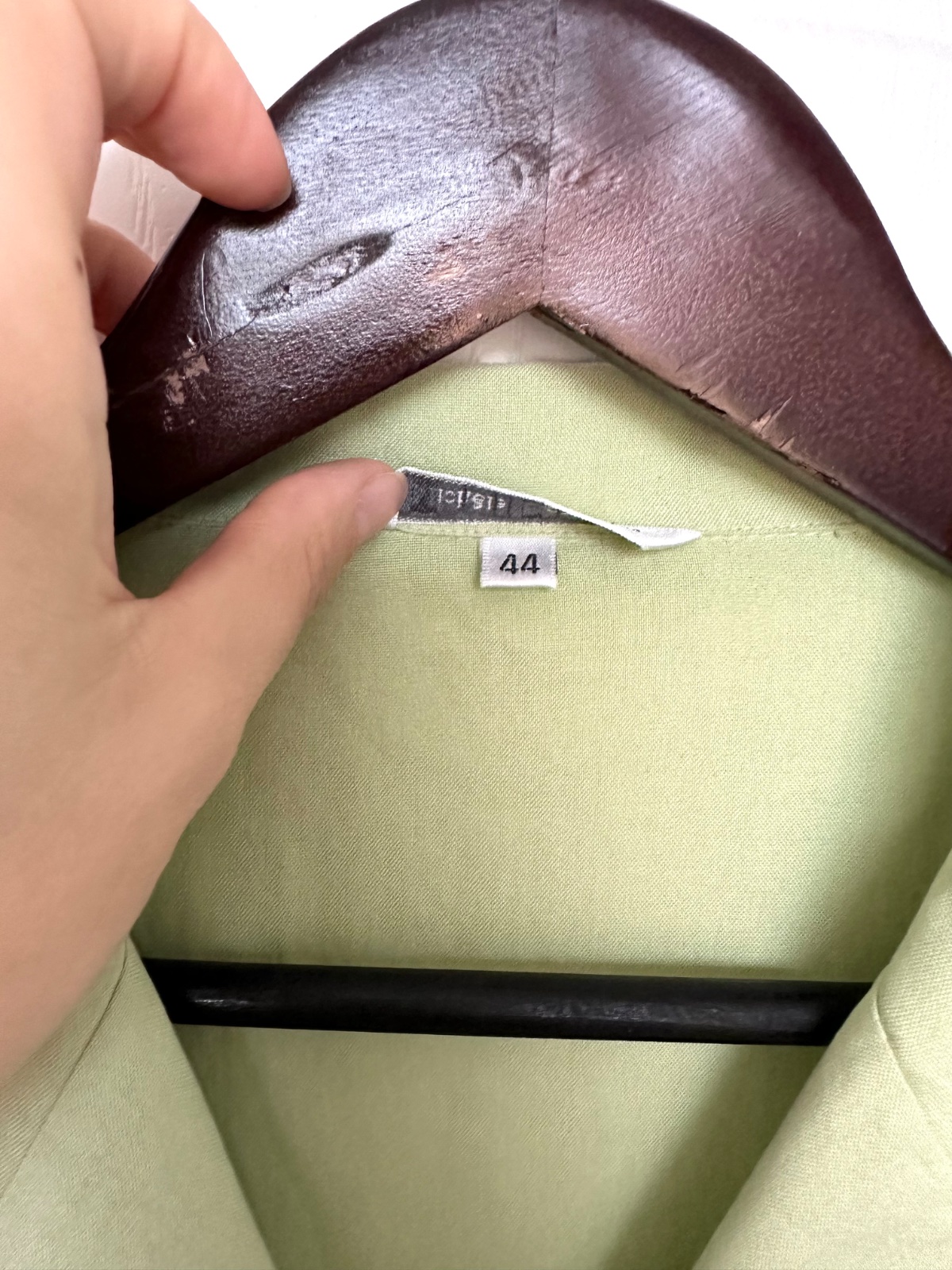 Krásna, klasická blúzka a vesta bez rukávov od renomovanej značky Michèle Boyard. Vyrobená celá z prírodného pleteného hodvábu v jemnej pistáciovej farbe, ponúka výnimočné pohodlie, priedušnosť a rafinovaný vzhľad. Je perfektným základom pre letný styling alebo ako elegantný doplnok vášho kancelárskeho outfitu. Veľkosť na etikete je 44 a všetky miery sú na fotografiách. Látka je 100 % hodváb s krásnou, mierne surovou/matnou textúrou typickou pre vysoko kvalitný prírodný hodváb. Má svetlý, pastelový odtieň zelenej (pistáciová/celadónová). Je to košeľový strih bez rukávov s elegantným golierom. Jemné záševky vzadu tvarujú siluetu. Zapína sa na krásne trblietavé gombíky pripomínajúce perleť. Súčasťou balenia je aj unikátne všitý náhradný gombík.