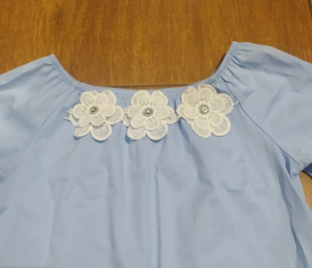 Bavlnená blúzka zdobená 3D kvietkami z krajky