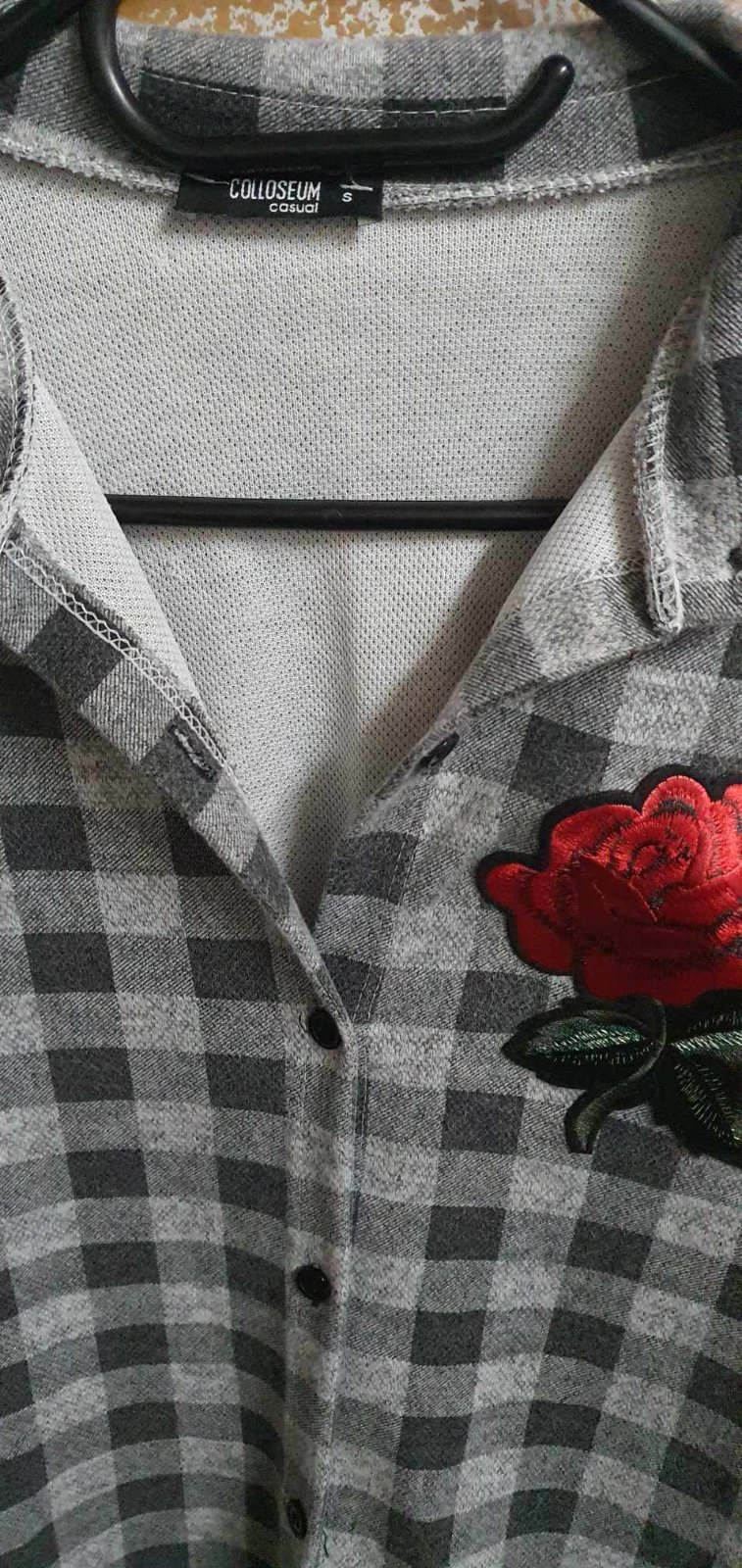 bluzka s dlhym rukávom ma vhodny strih pre velkost S. je zo strecoveho materialu. je vzorovana, vzory su sedych odtienov. ak nebude osobny odber, prirata sa postovne.