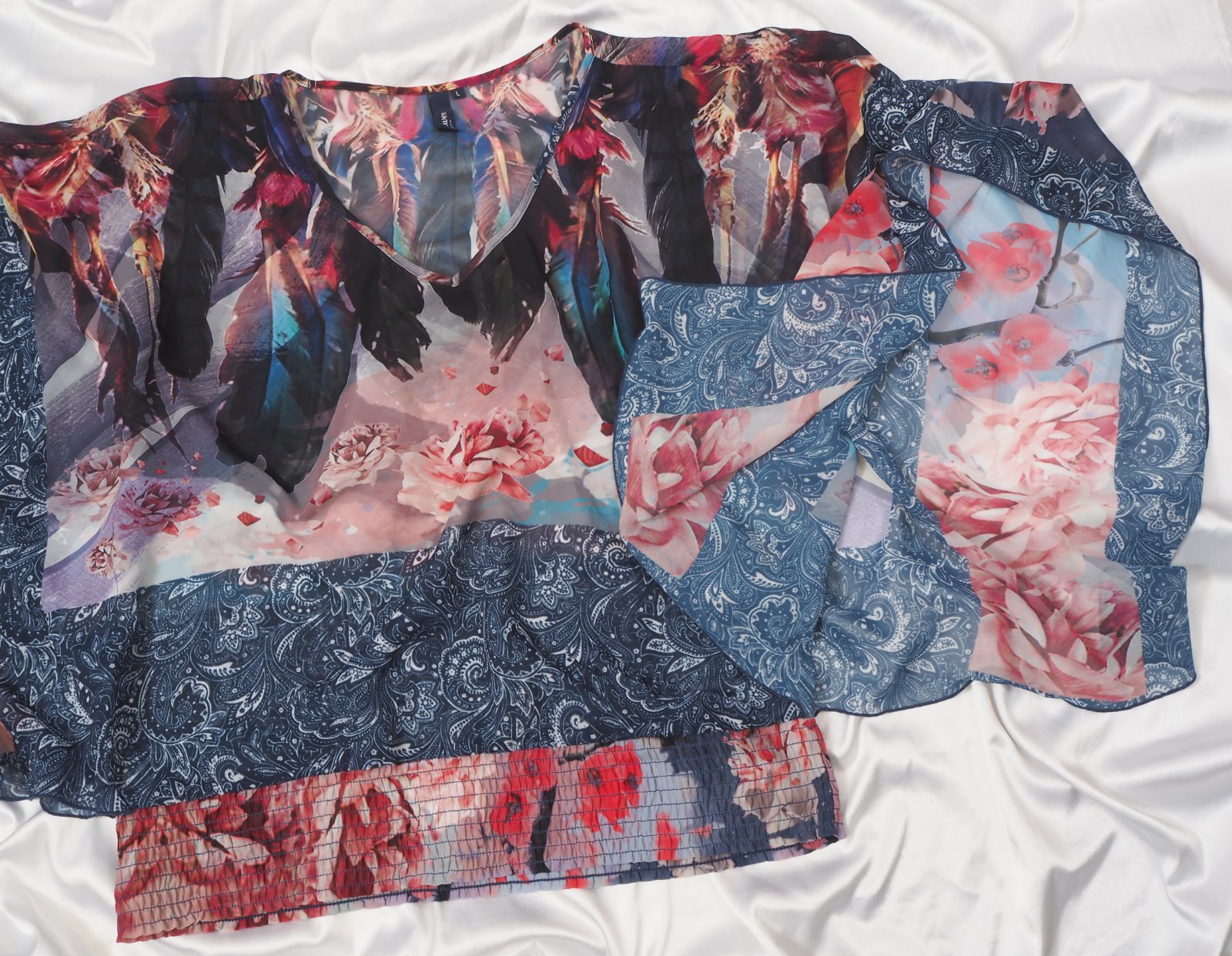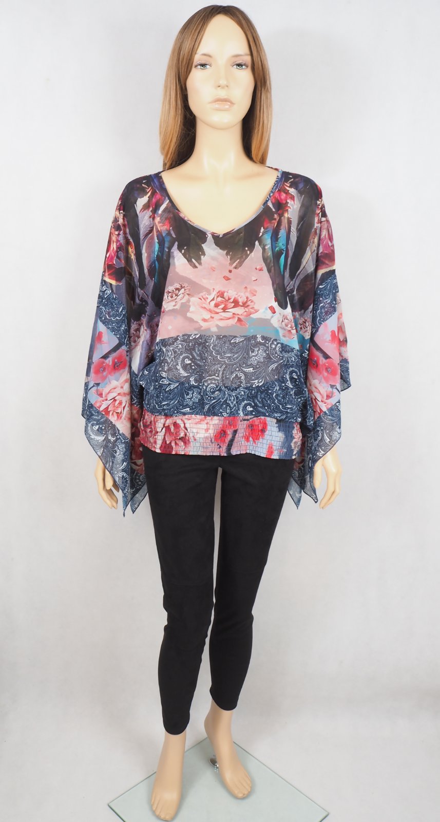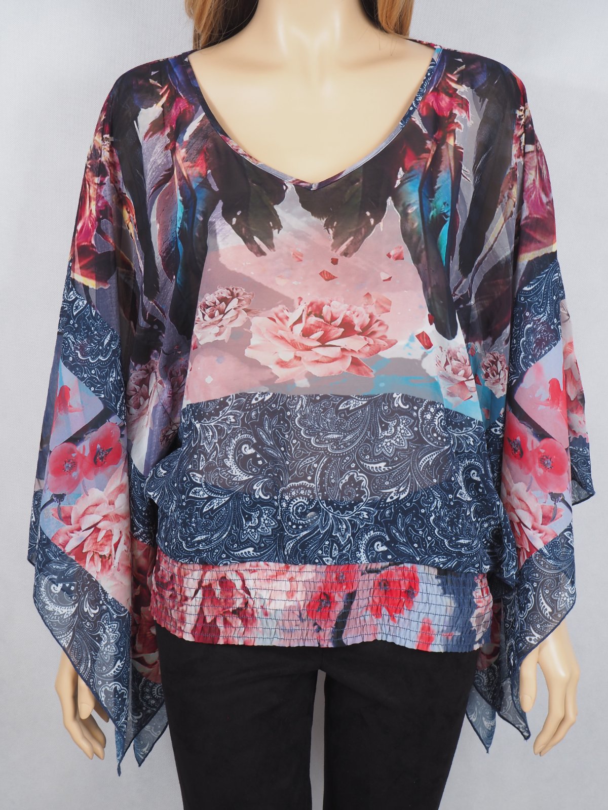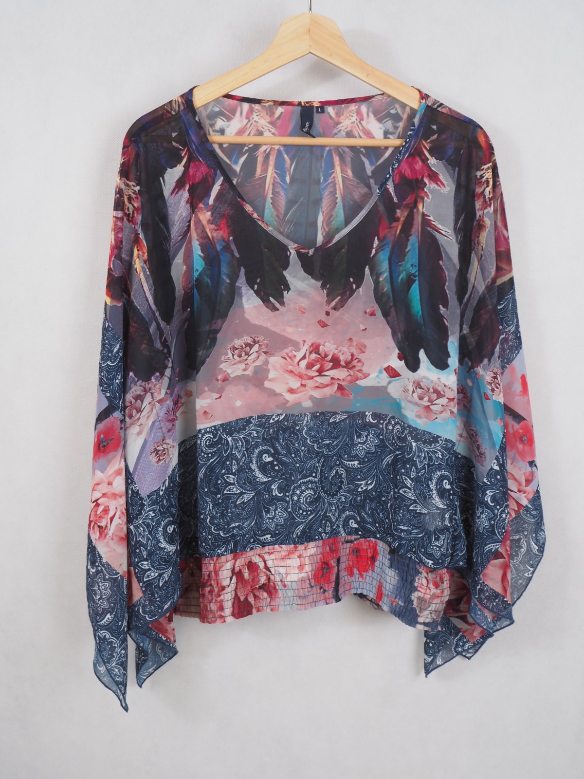 Kvalitný letný top, v páse gumka, padavé voľné rukávy, materiál 100% polyester, super stav.