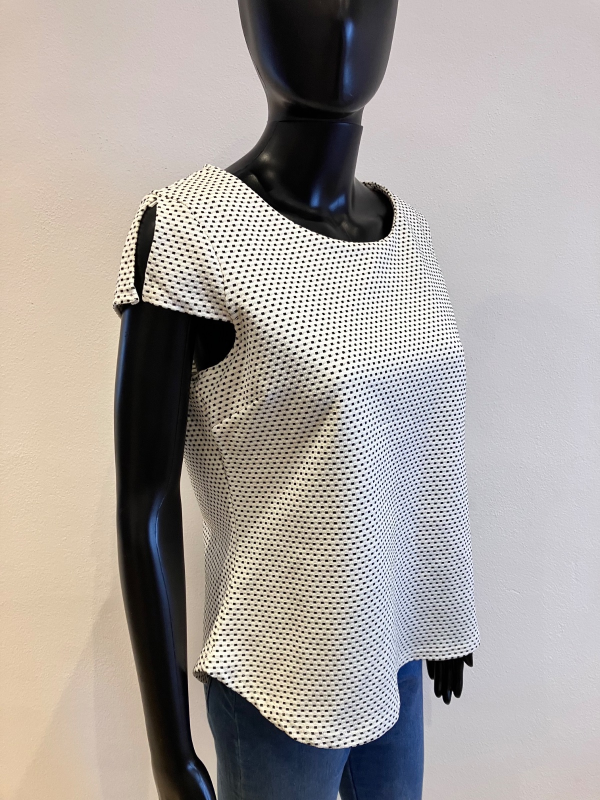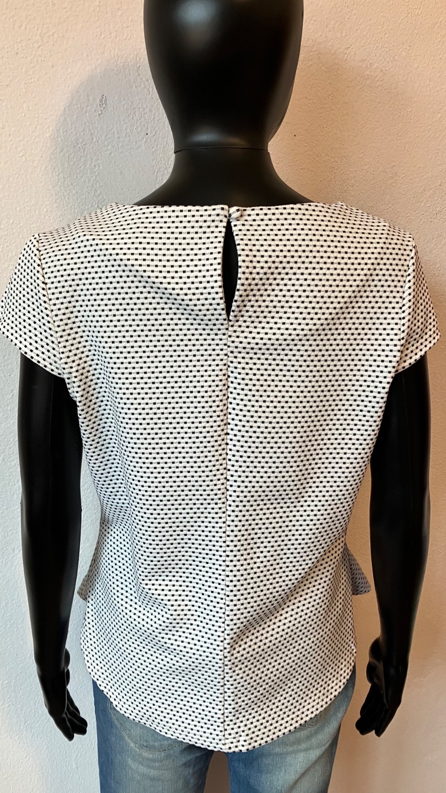 Dámska bodkovaná blúzka s krátkym rukávom, elastické, zapínanie vzadu na jeden gombík.