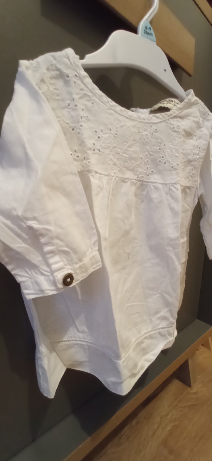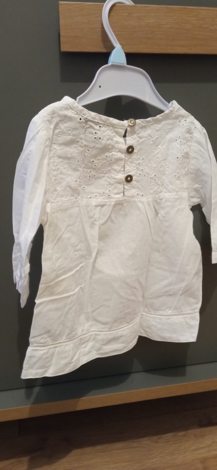 Predám nosenú v top stave bez známok nosenia košieľku alebo ako šaty s 3/4 rukávom. Má pekné prvky. Dcérka ju nosila od 10 mesiaca až do 19 mesiacov. Rozmery viď foto