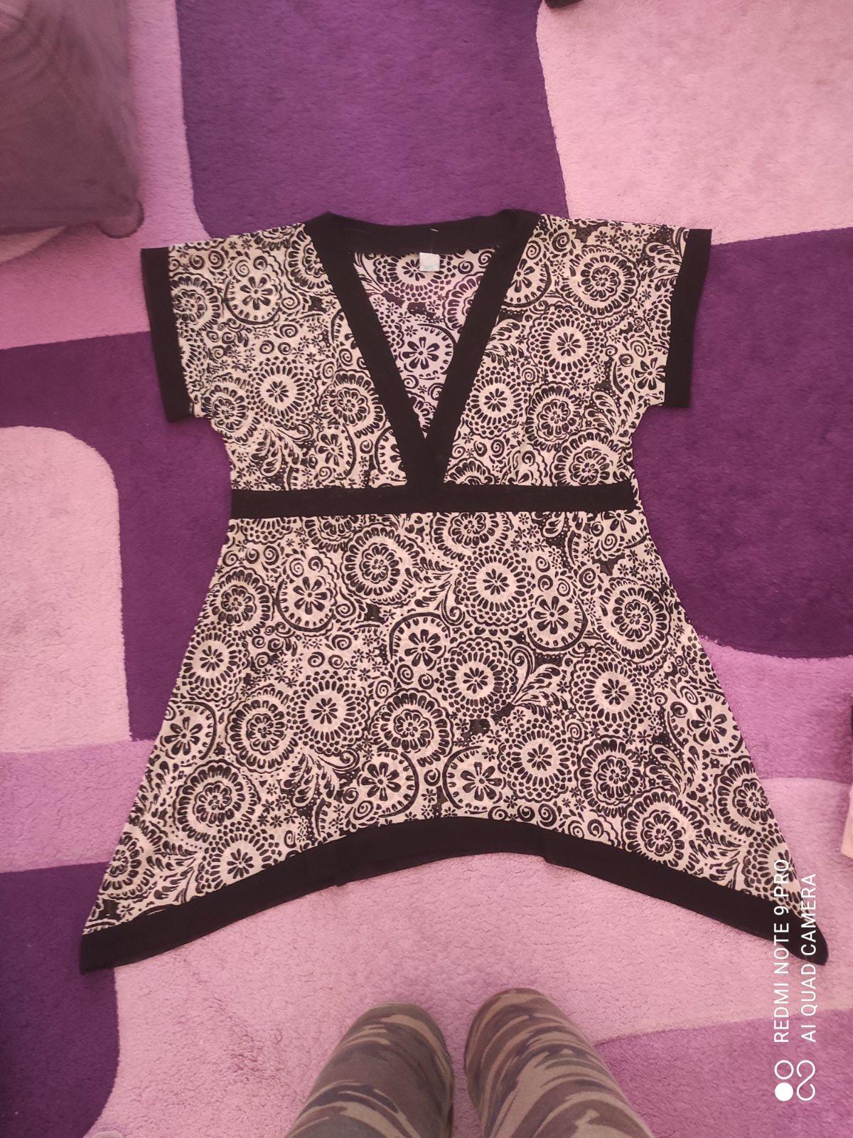 Na predaj 1x oblečená pekná blúzka. V predu čipka, priesvitná, vzadu nepriesvitne. Prsia 50, pas s gumičkou 48cm, dĺžka od krku 54cm. Cena s obyčajným postovnym