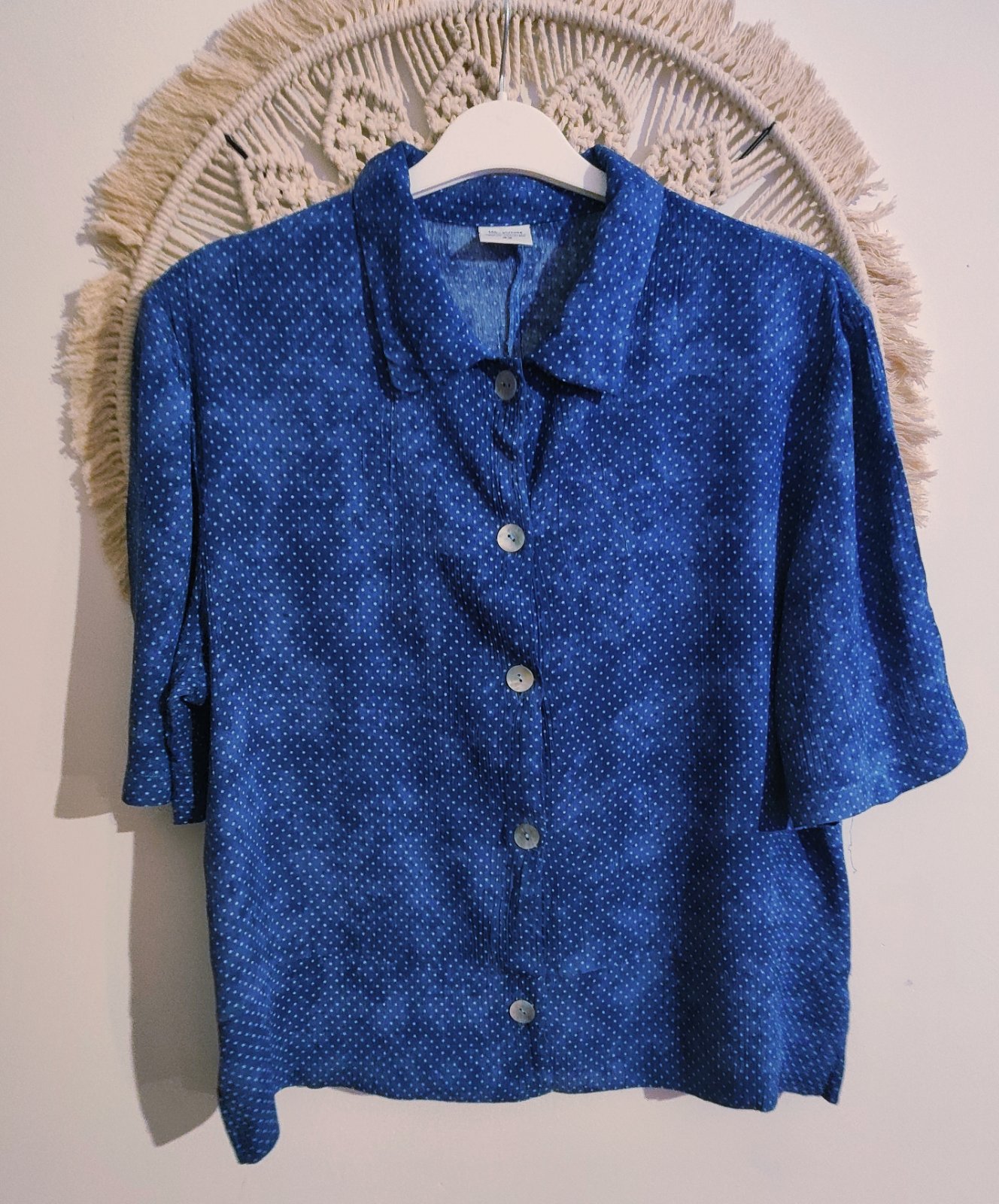 Modro biela vzorovaná blúzka, veľkosť XL. Značka H&M. Ľahký vzdušný materiál. Miery hrudník: 2x59cm dĺžka vpredu: 65cm dĺžka vzadu: 71cm