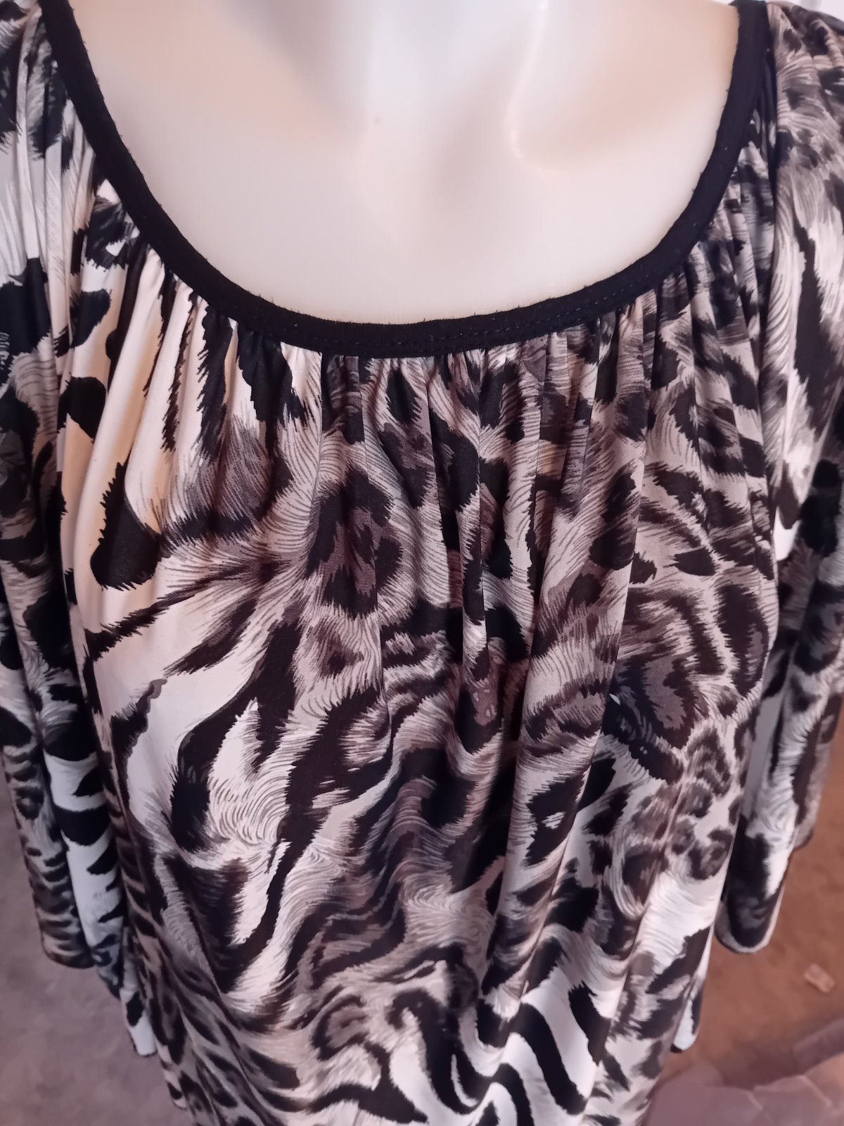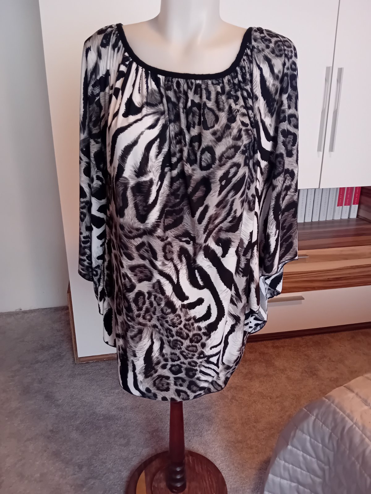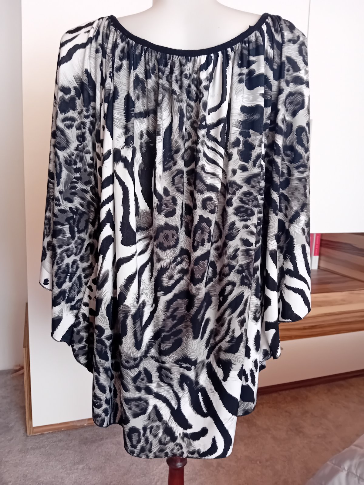 Voĺná blúzka, dá sa nosiť aj s opaskom, ale nie je k nej originál. Nosím veĺkosť 42-44, ale môže byť aj pre väčšie číslo.