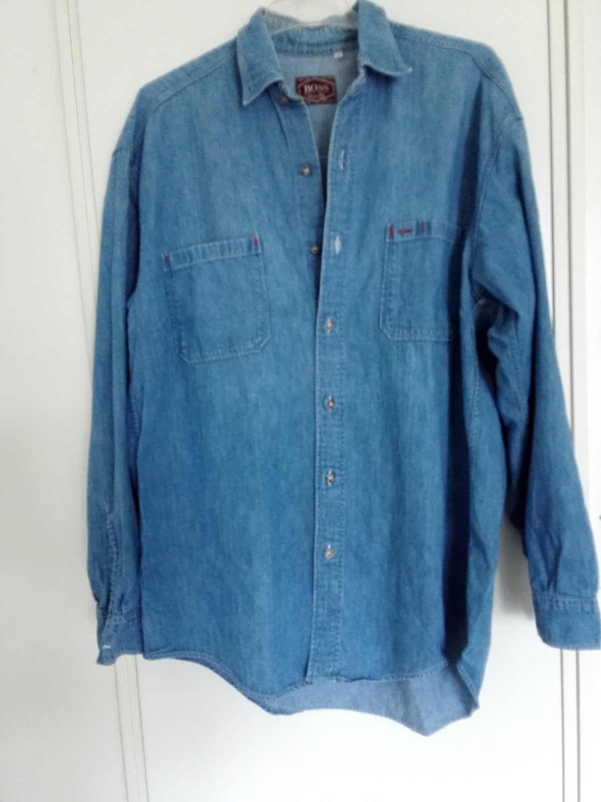 Minimálne nosena pánska značková košeľa Hugo Boss, obvod hrudníka je 126 cm rukavy od krku 81 cm a dĺžka je 80-86 cm vzadu