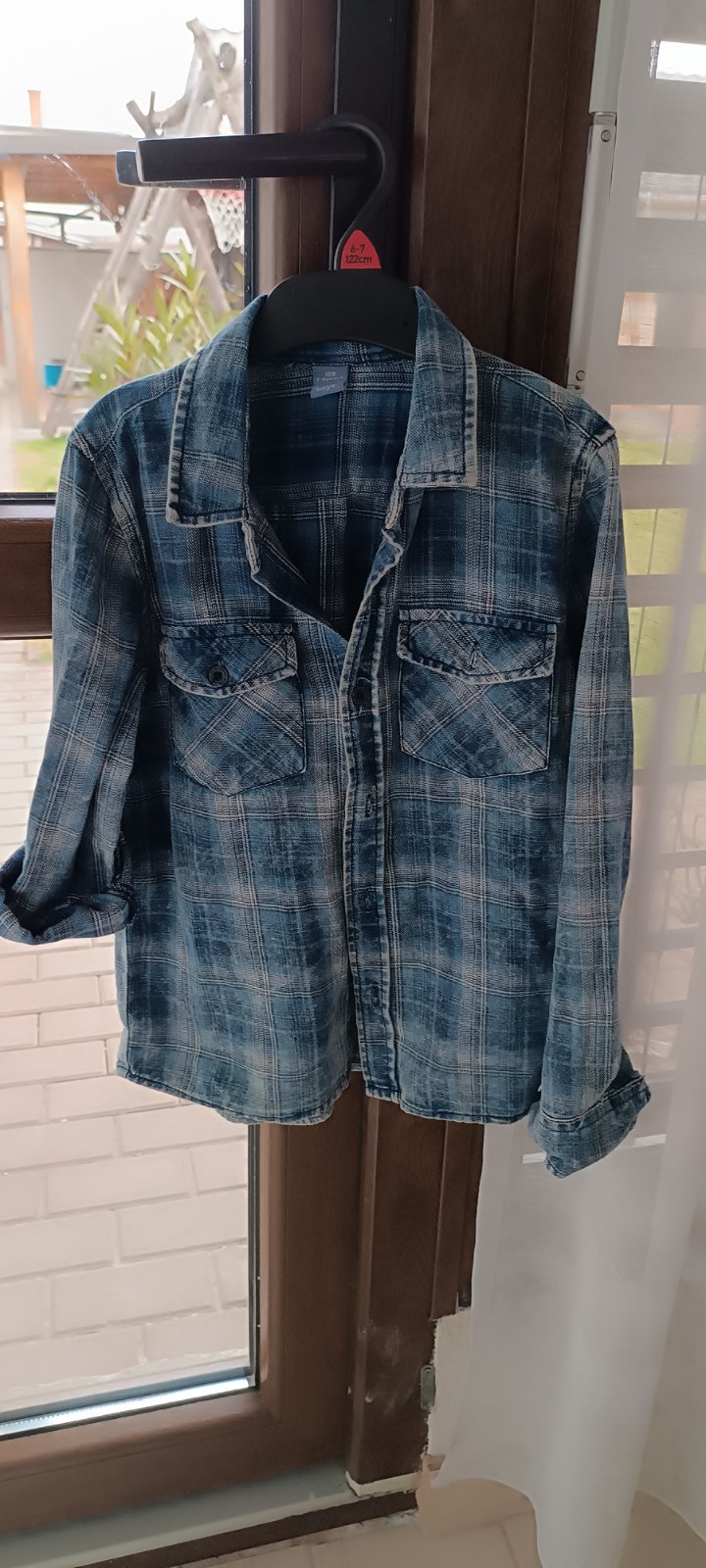 Riflová košeľa, 7-8 rokov, dlhý rukáv, ale dá sa dať aj na 3/4 rukáv,výborný stav