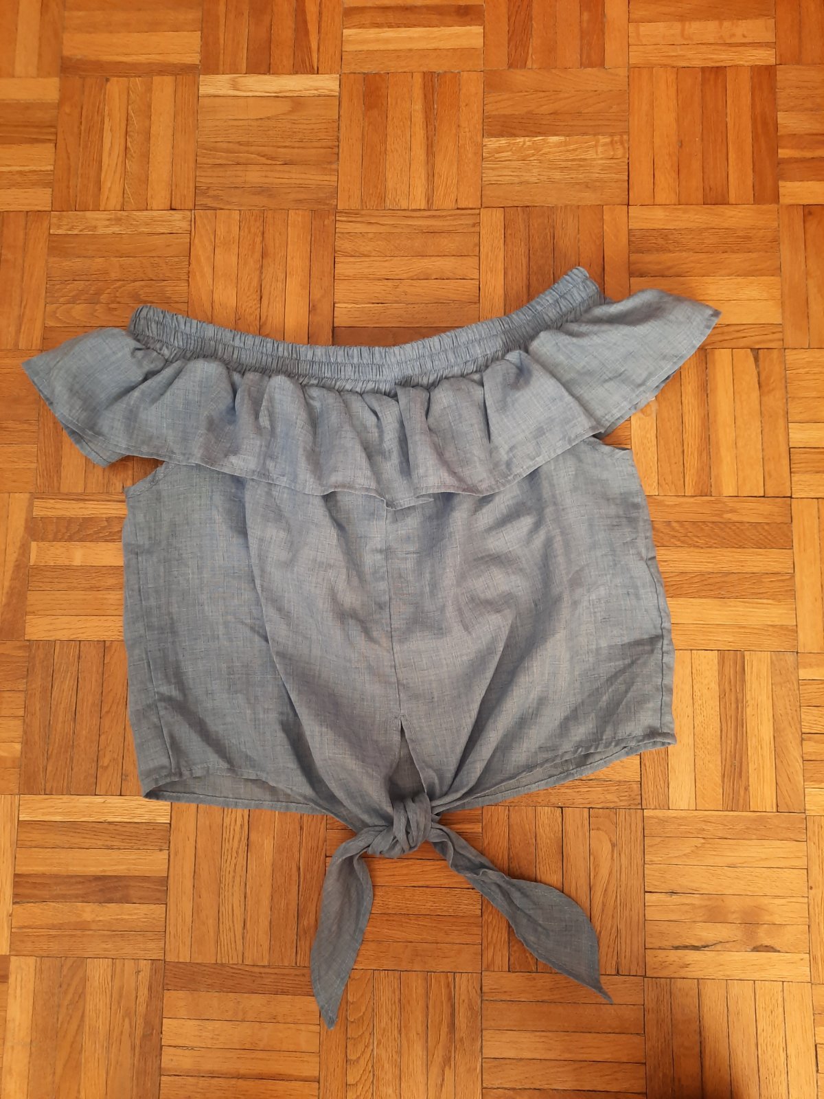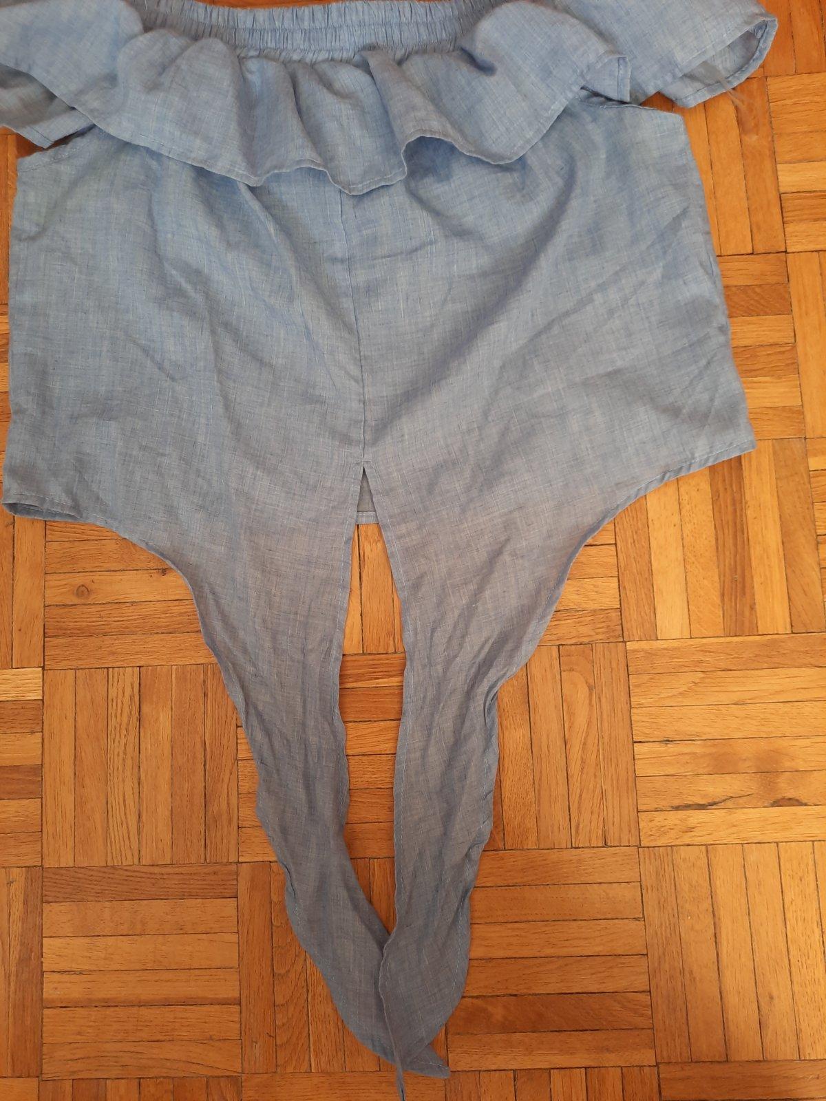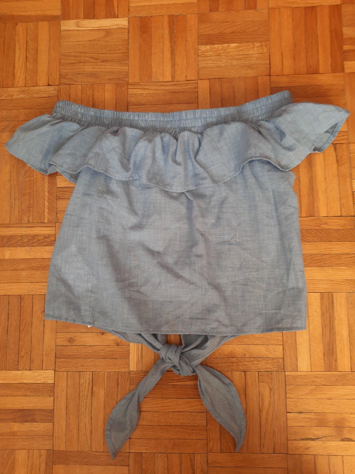 Krásna letná vzdušná blúzka s odhalenými ramenami. Dole sa zaväzuje na uzol, hore je širšia guma, ktorá super drží.
