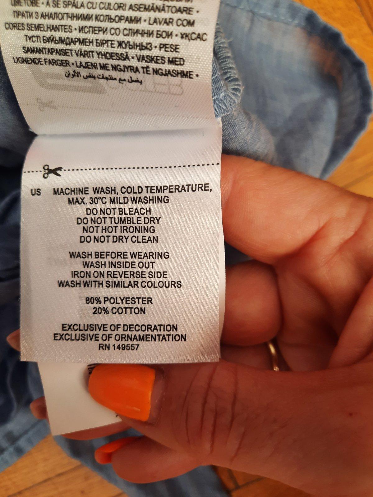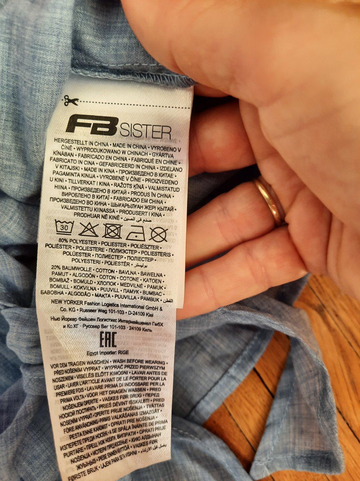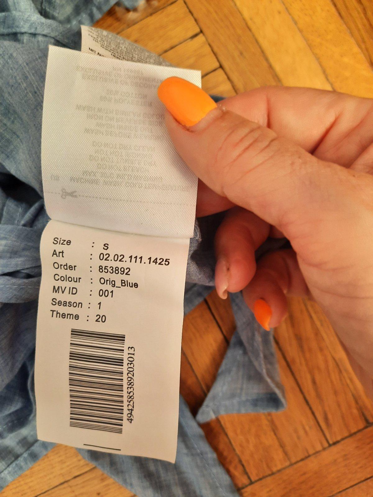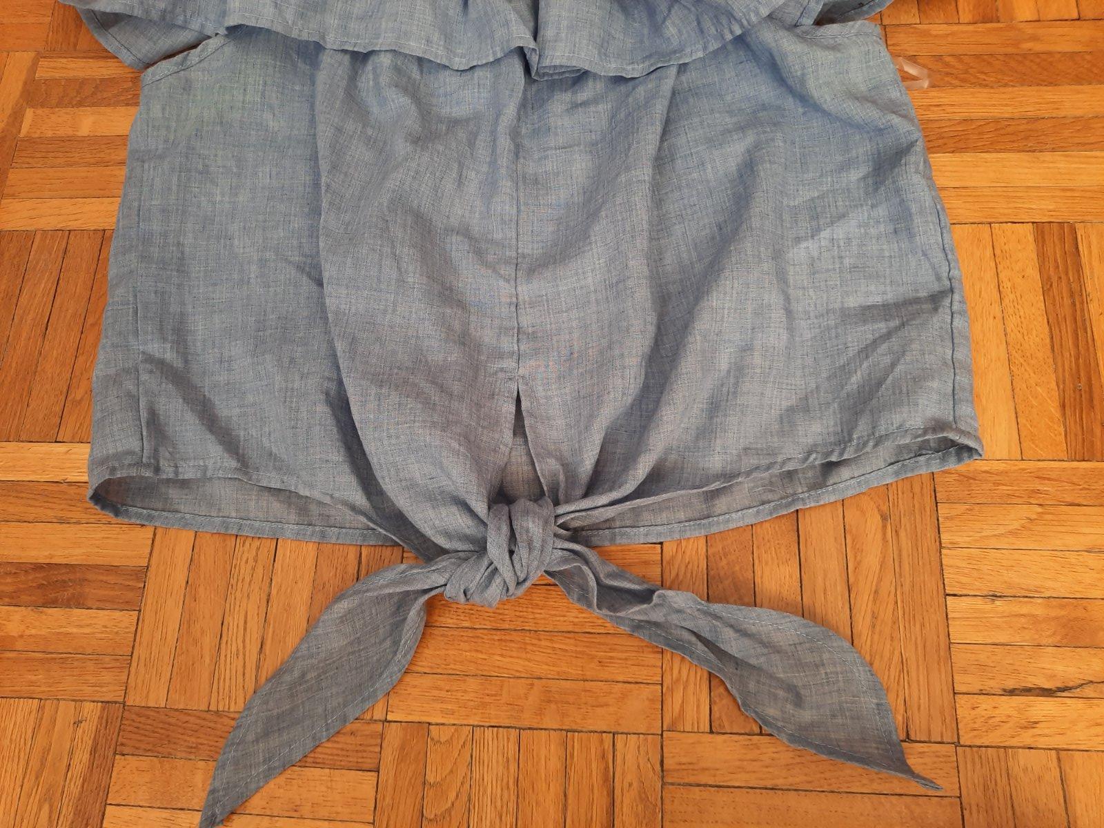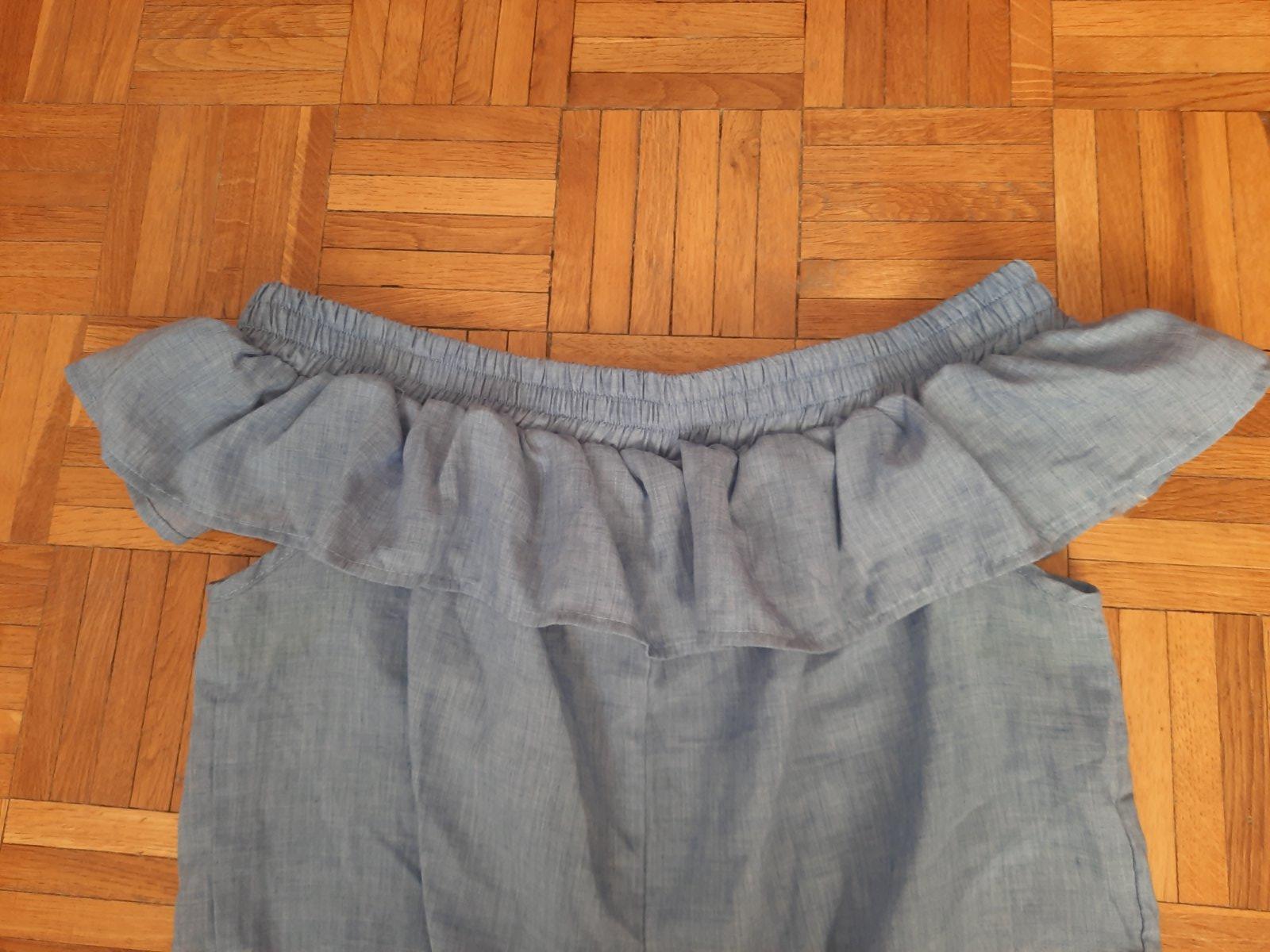 Tenká košieľka, modro-biely pásik, bez rukávov s volánmi. Veľkosť S.