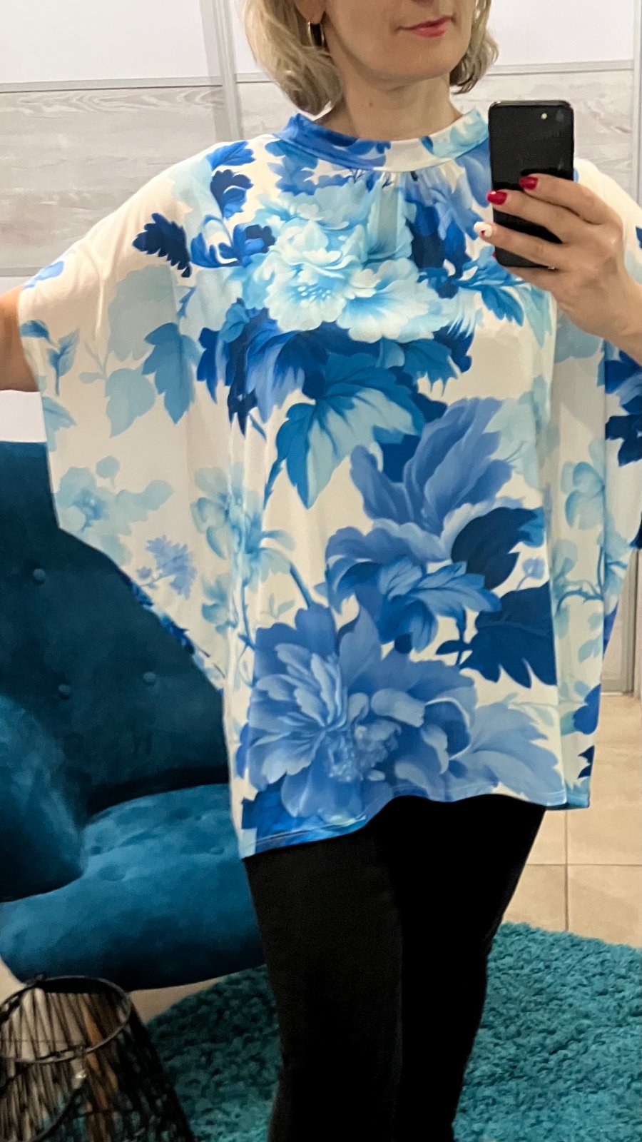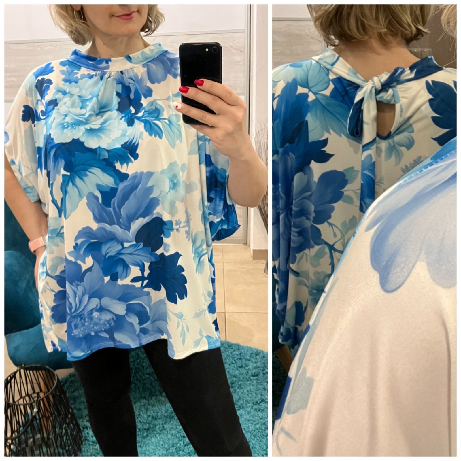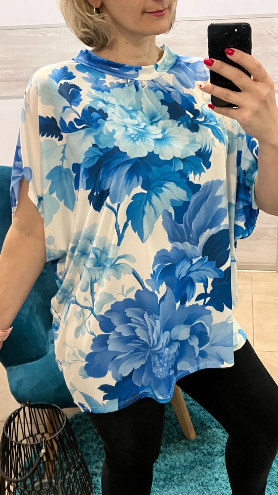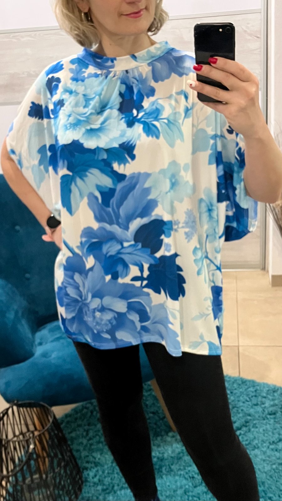 Dámska kvetovaná oversize tunika bielo-modrá (Uni)