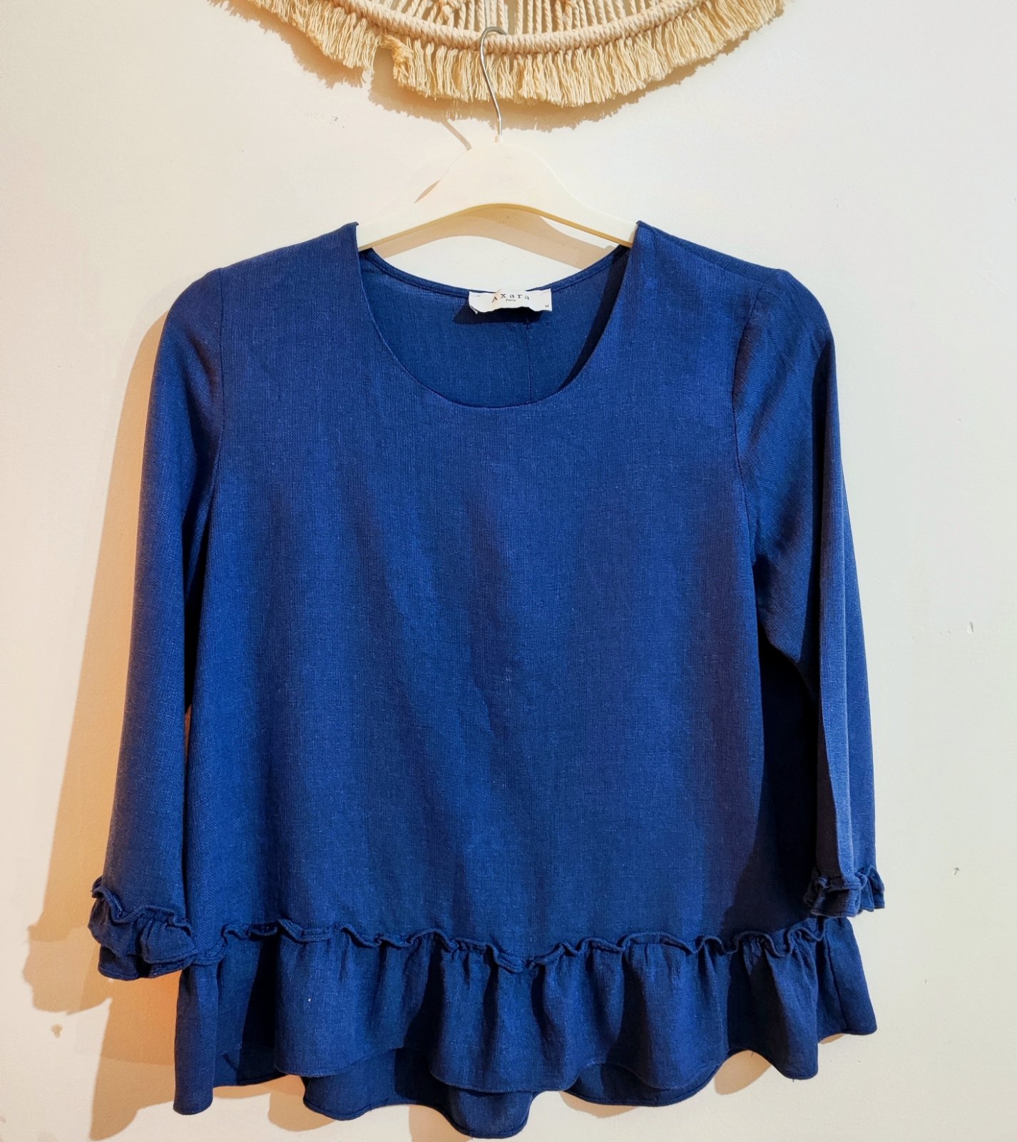 Elegantná tmavomodrá blúzka vo výbornom stave, bez poškodenia, 3/4 rukáv, vzadu v hornej časti zips zlatej farby