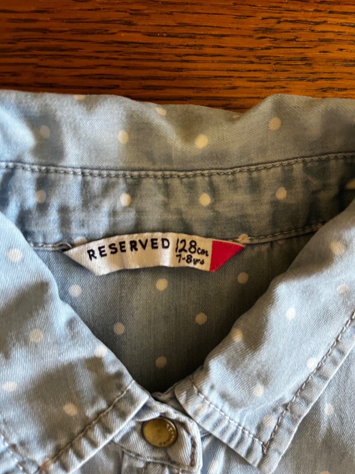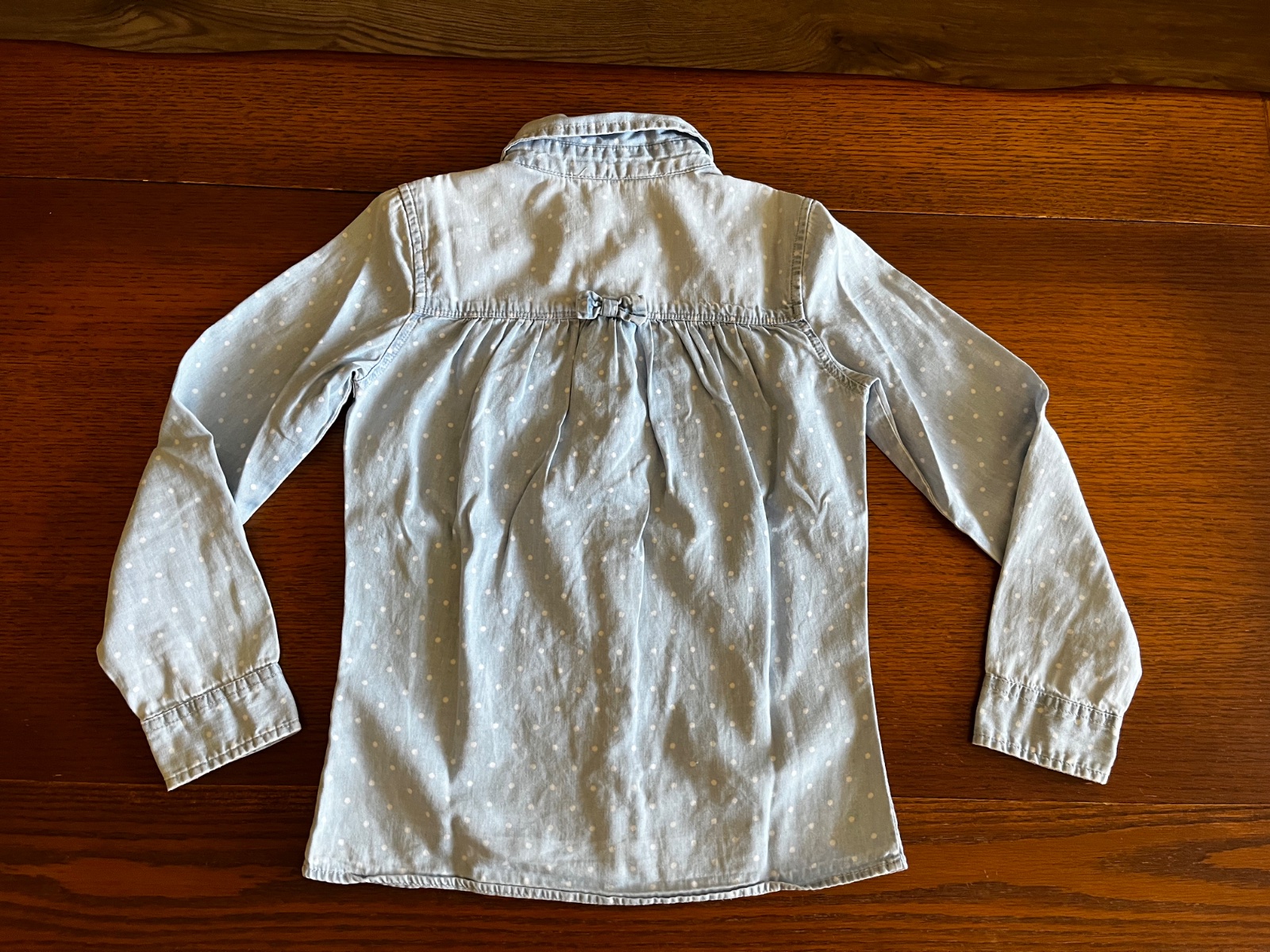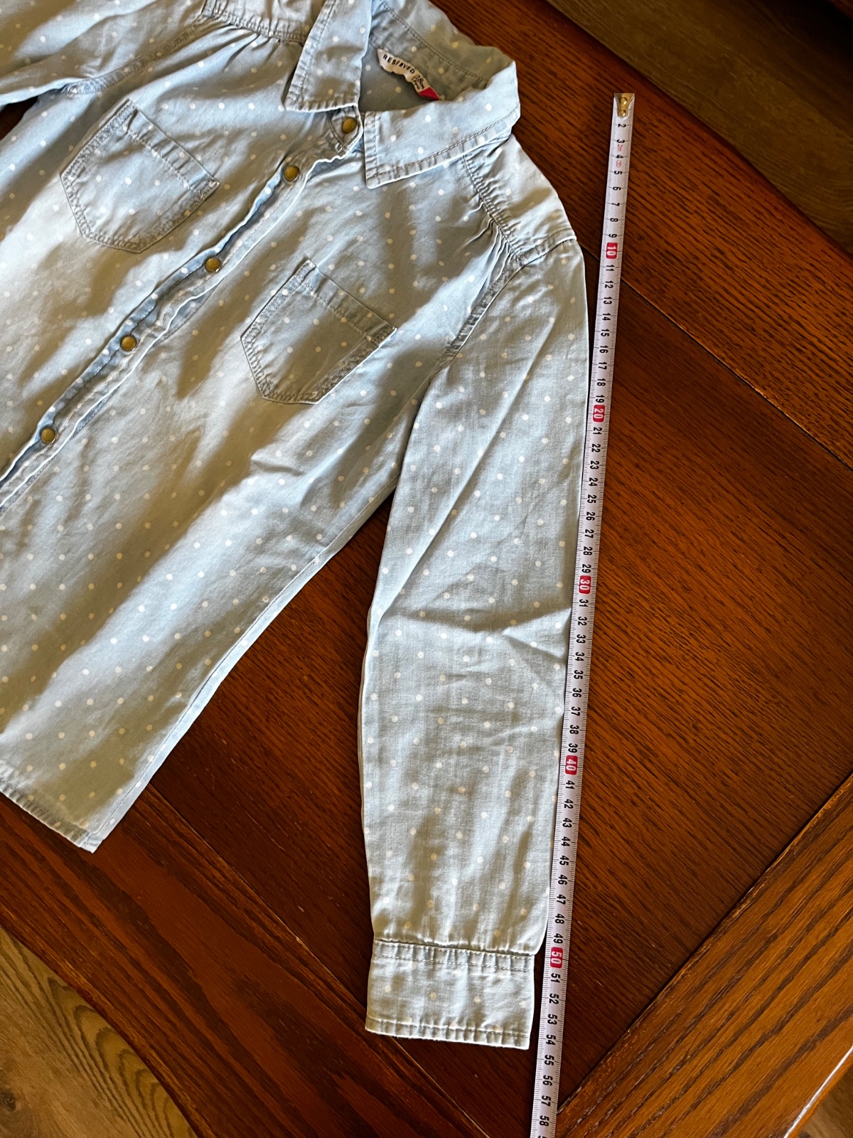 Top stav, párkrát oblečená bodkovaná bavlnená košeľa so vzhľadom rifloviny. Je veľmi jemnučká a mäkučká.