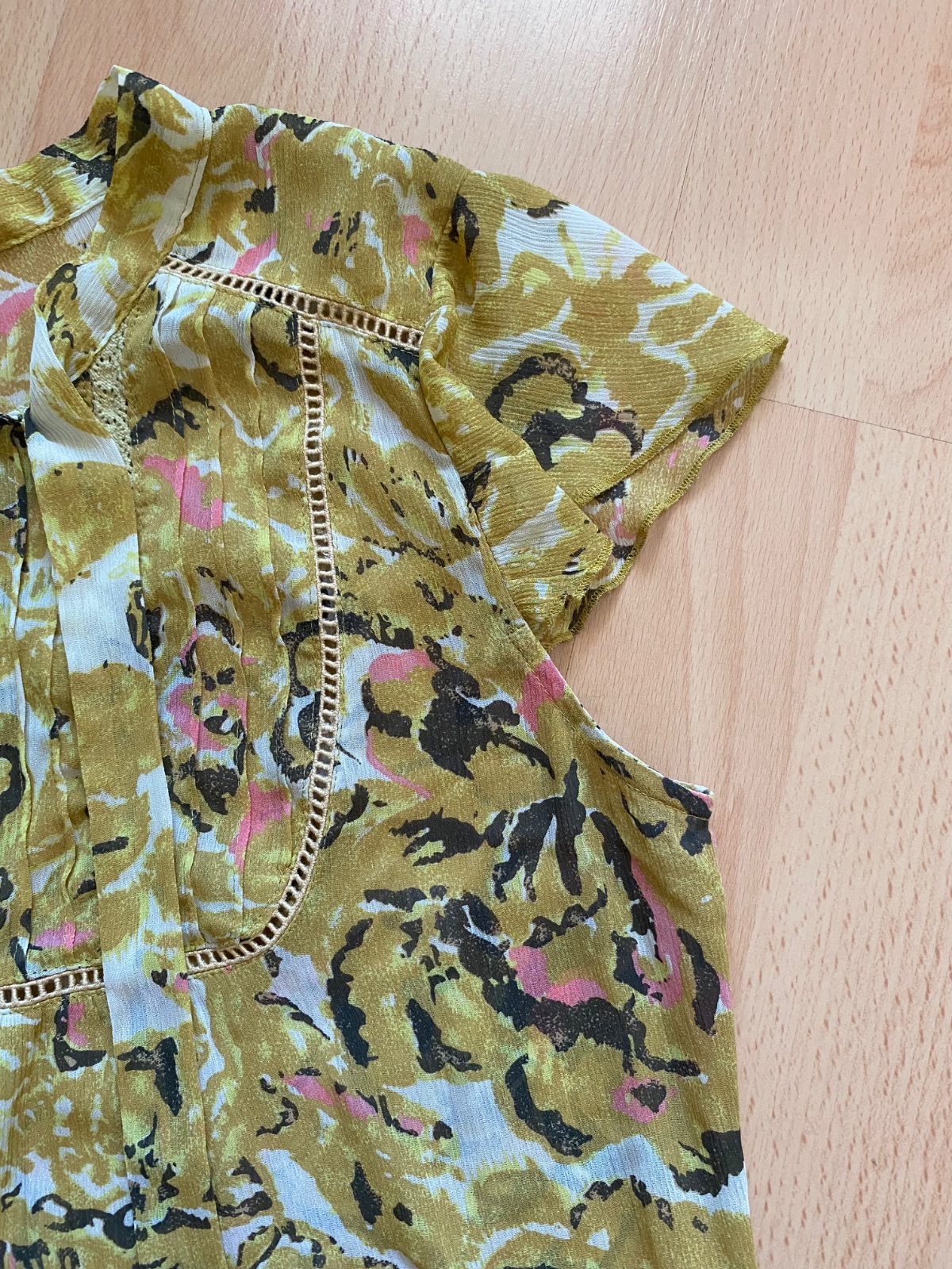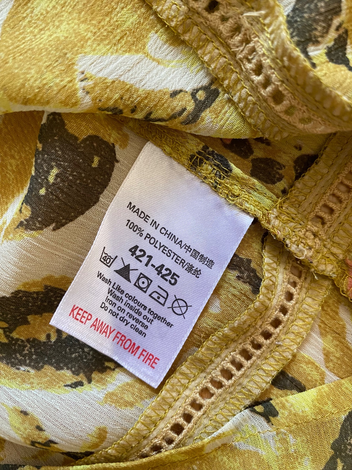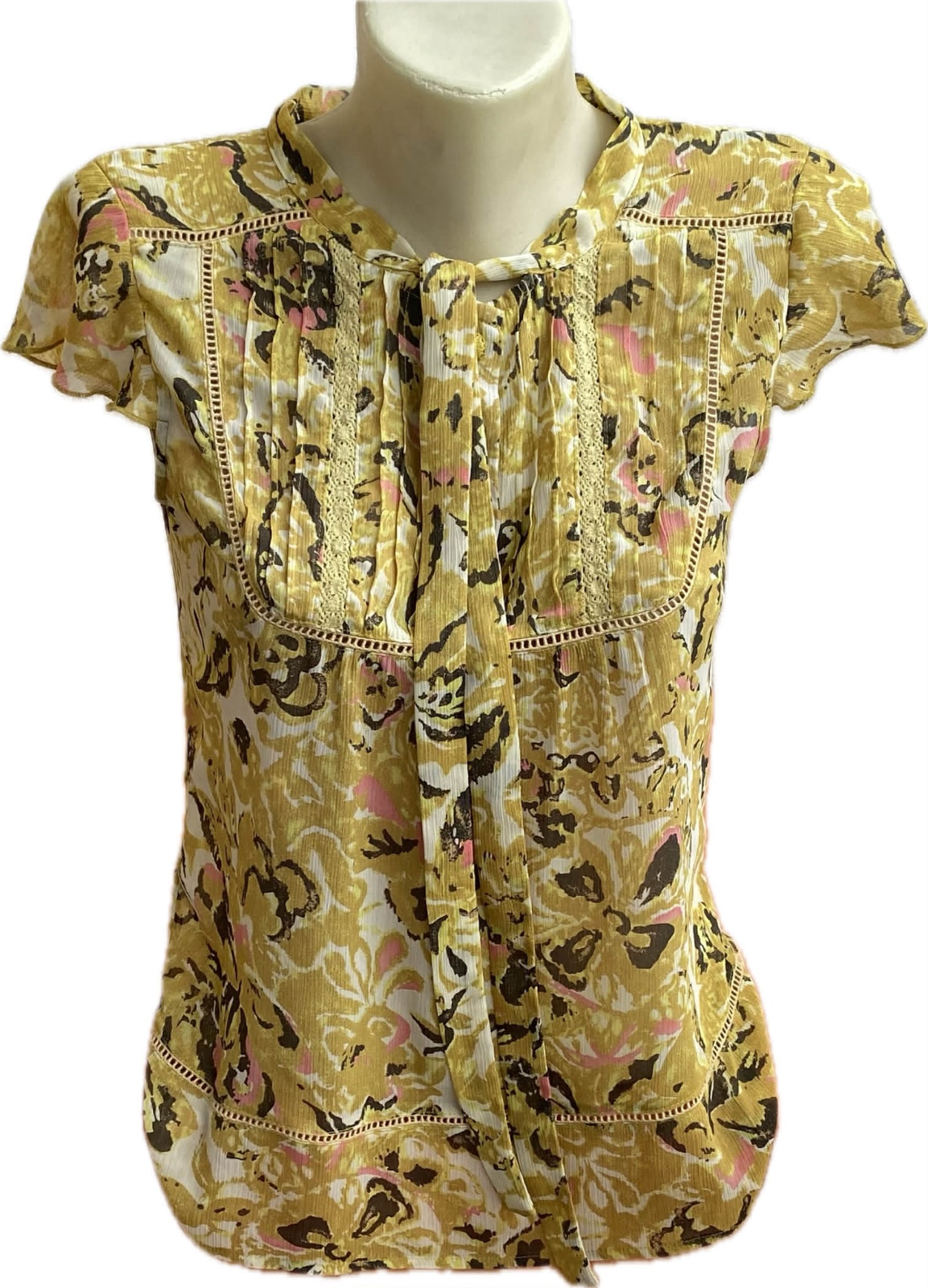 Predám ľahkú minimálne nosenú žltú vzorovanú blúzku / top zn. NEXT veľ. 8 (EU 36), bez poškodenia. Rozmery: ramená 36 cm, hrudník 2 x 45 cm, celková dĺžka 60 cm.