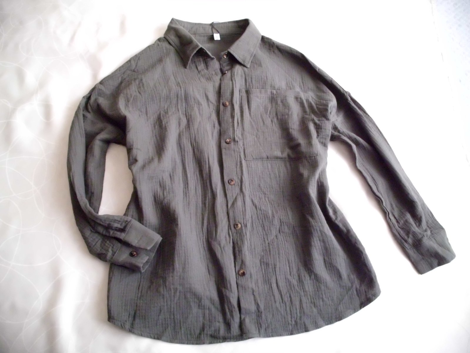 Predám dámsku oversize košeľu Nonsar vel.XL . šírka 62 cm, dĺžka 76 cm, rukáv 75 cm od , krku, vpredu väčšie vrecko, príjemný ľahší materiál , farba tmavo olivová , 1x oblečená nepraná ,100% stav
