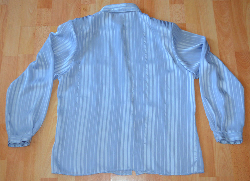 Lahucka, priesvitna. Dlhy rukav, zapinanie na gombiky, ma vypchavky na pleciach.
