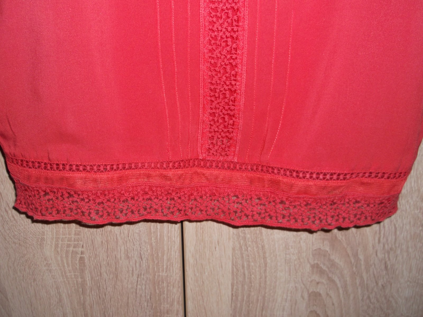 Korálovočervená farba, dlžka 60, šírka v podpazuší 46x2.