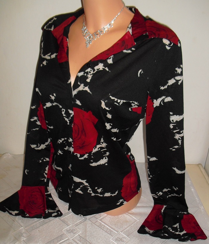 predam nadhernu jemnucku kosielkovu bluzocku, zapinanie na gombicky, vybornom stave, s ruzickami zdobena, znackova, velkost uvedena 38/m. sirka 47 cm x 2, dlzka 57 cm, jemnucko presvita, elegantna.