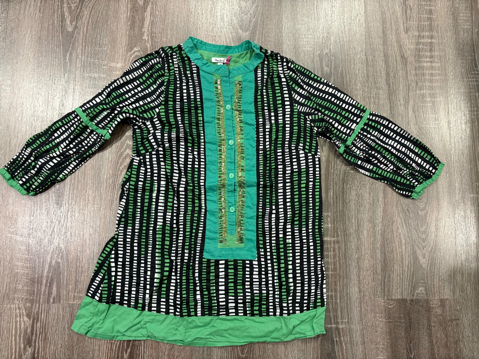 02.PEPE JEANS krasna letna bluzka , super farebna kombinacia, velkost M, velmi dobrý stav , jedine v strede sem tam opada neaké trblietky , nič strašne...Dlžka je 65cm , dlžka rukáva od krku je 50cm, rukyvy su 3/4, širka v podpazuší je cca 42x2cm