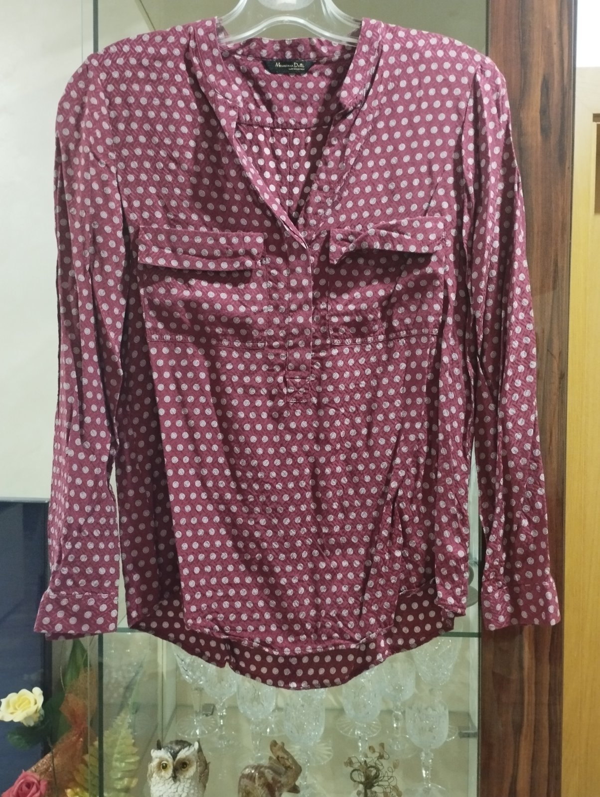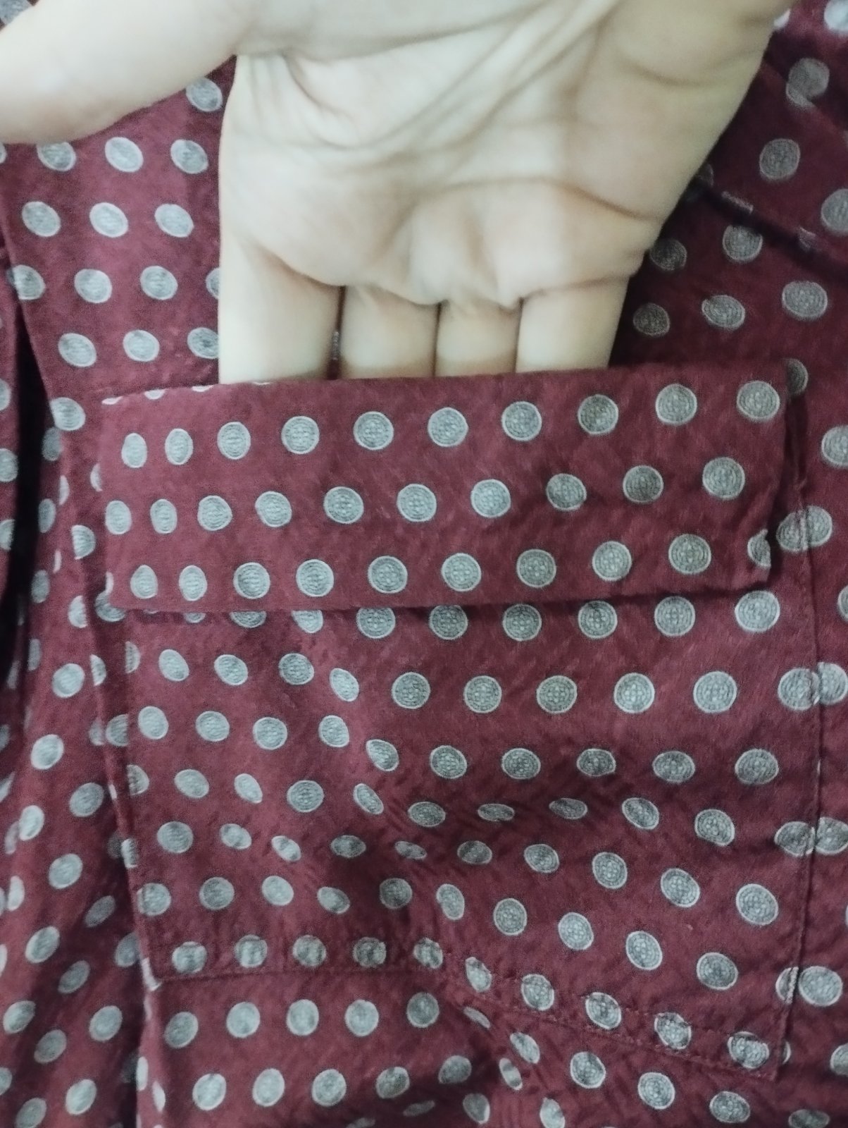 Tenký satén. Krásna bohužiaľ už mi je úzka. Na prsiach vrecká. Pazuchy 94 cm, zadný diel 66 cm, rukáv 57 cm.