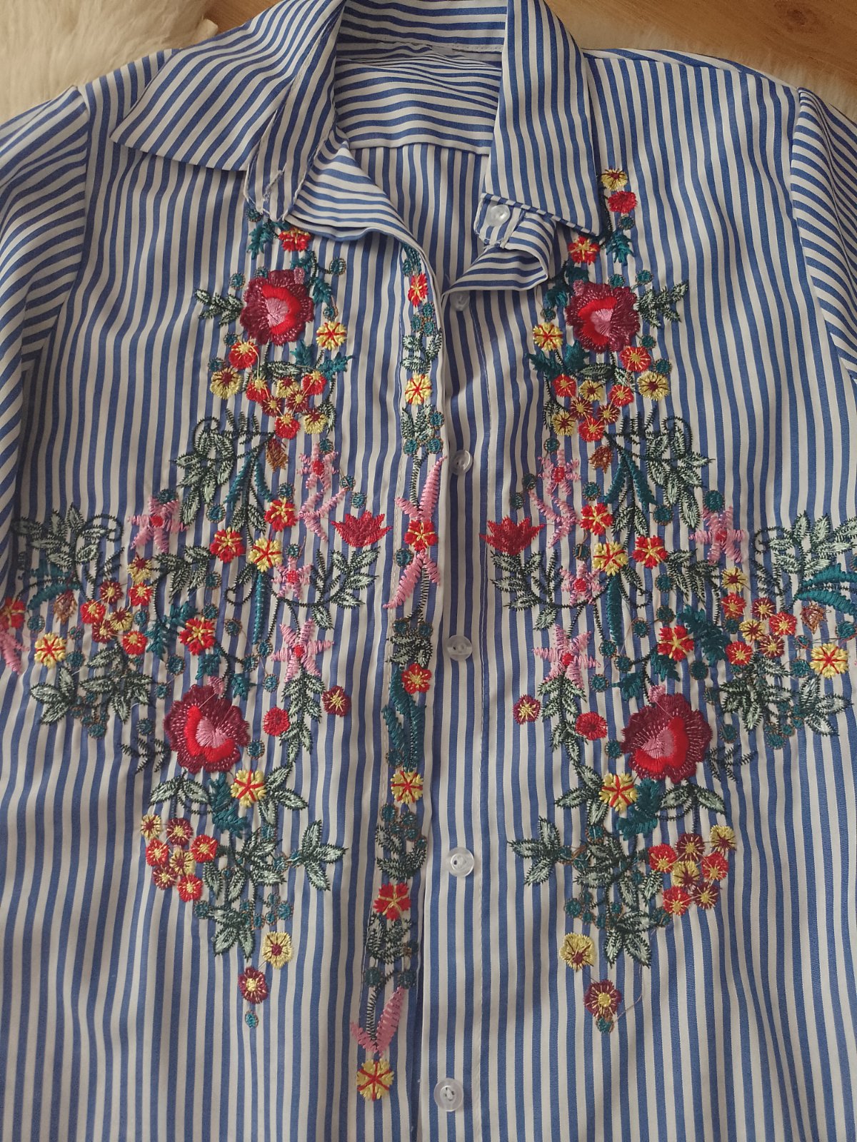 Krásna vyšívaná košeľa v super stave, malá chyba na rukáve,viď foto, ale pri nosení nevidieť