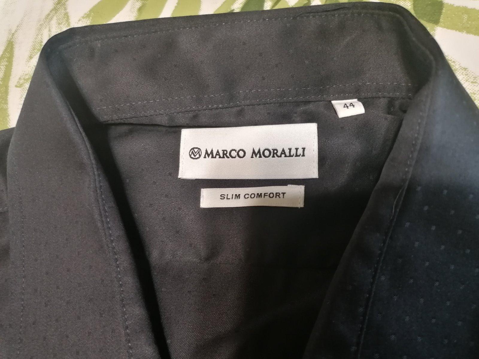 Pánska košeľa s krásnym odleskom, zn.Marco Moralli, strih je slim comfort, veľkosť 44. Celková dĺžka od ramena dole je 79 cm, šírka 2x60 cm. Bez poškodenia.