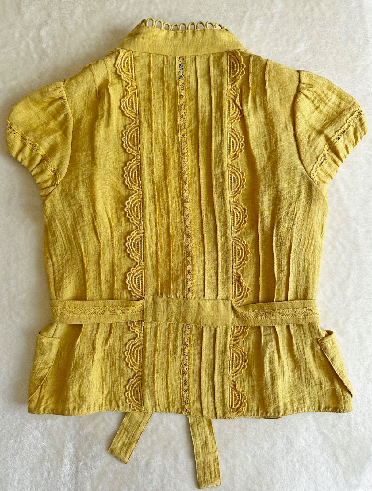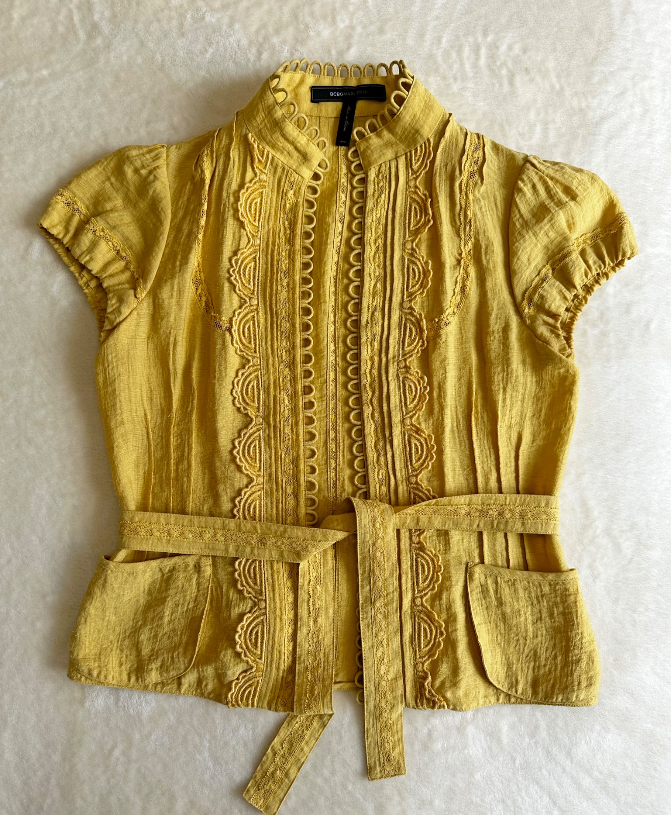 Luxusný elegantný top na leto americkej značky BCBG Max Azria, ktorá kombinuje parížsku eleganciu s americkou praktičnosťou. Materiál je vzdušný, príjemný na pokožku. V páse je uväzovací opasok, vpredu 2 malé vrecká. Krásny kúsok na zvýraznenie šatníka, nadčasový štýl. V super stave, bez poškodení.