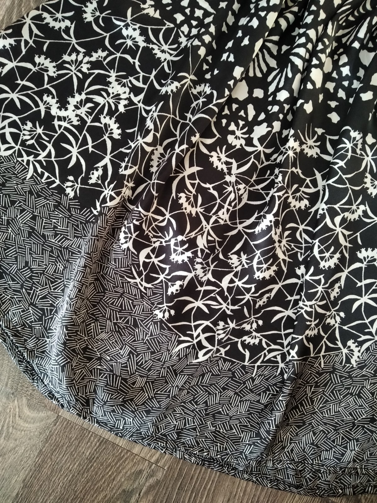 Kvetovana krasna blyzka s dlhým rukávom. Rozmery cez prsia 55x2cm, dlzka chrbta 72cm, vpredu dlzka od ramena 64cm. Material je 100%viskóza. Výborný stav.