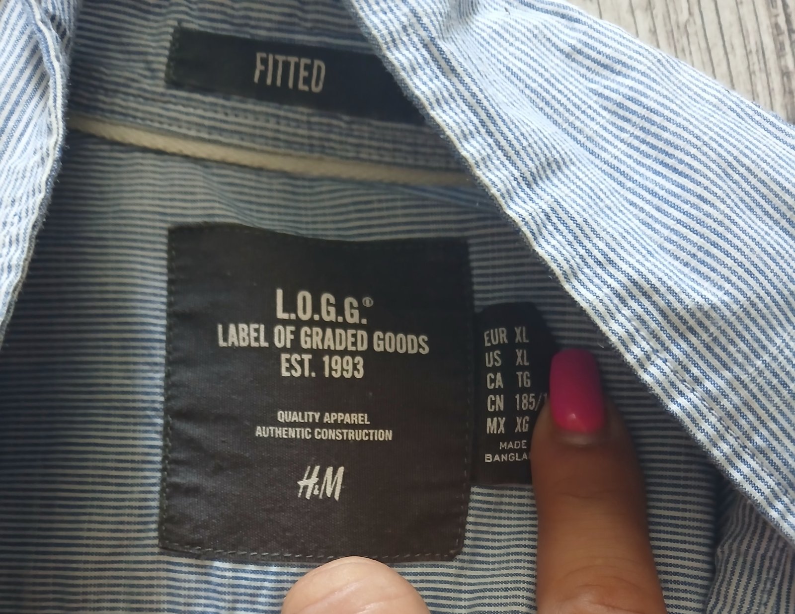 100% stav, original. velkost na stitku 15 a pol, sadne na xl. 100% bavlna. SJ