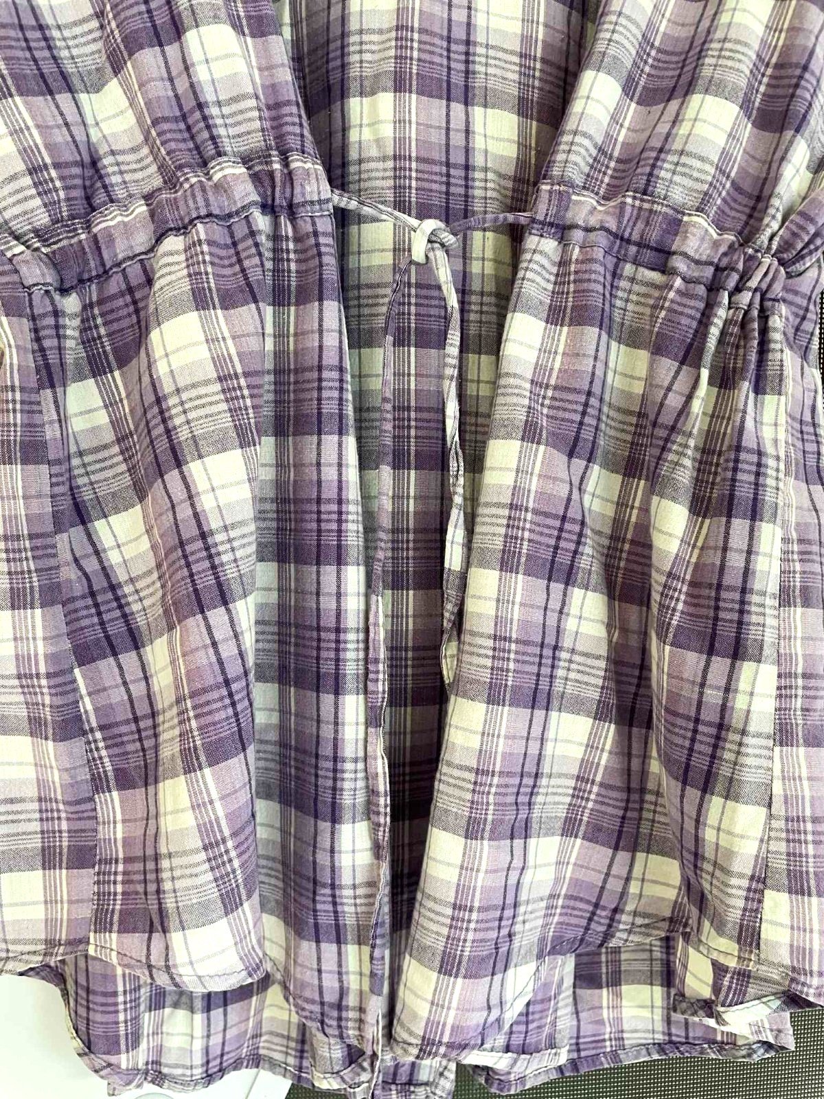 krásna neznosená trendová košeľa,krásne ušitá,vzadu jemný tunel po bokoch,kde sa dá podľa potreby upraviť obvod šnúrkou,pekne sedí na postave,vpredu vrecká,vyhrňovací voľný rukáv, veľmi variabilná,šírka = 66 cm x 2, ramená = 12 cm, rukáv = 47 cm,dlžka meraná na boku = 41 cm, dlžka meraná v strede = 74 cm ( je jemne vykrojená do oblúka )