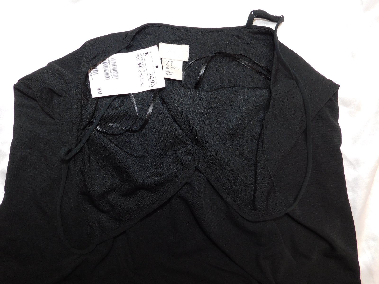 H&M trendy top čiernej farby,podšity,z mierne elastickeho materialu. 55%viskoza,45%polyester. PC 24,95€. se37