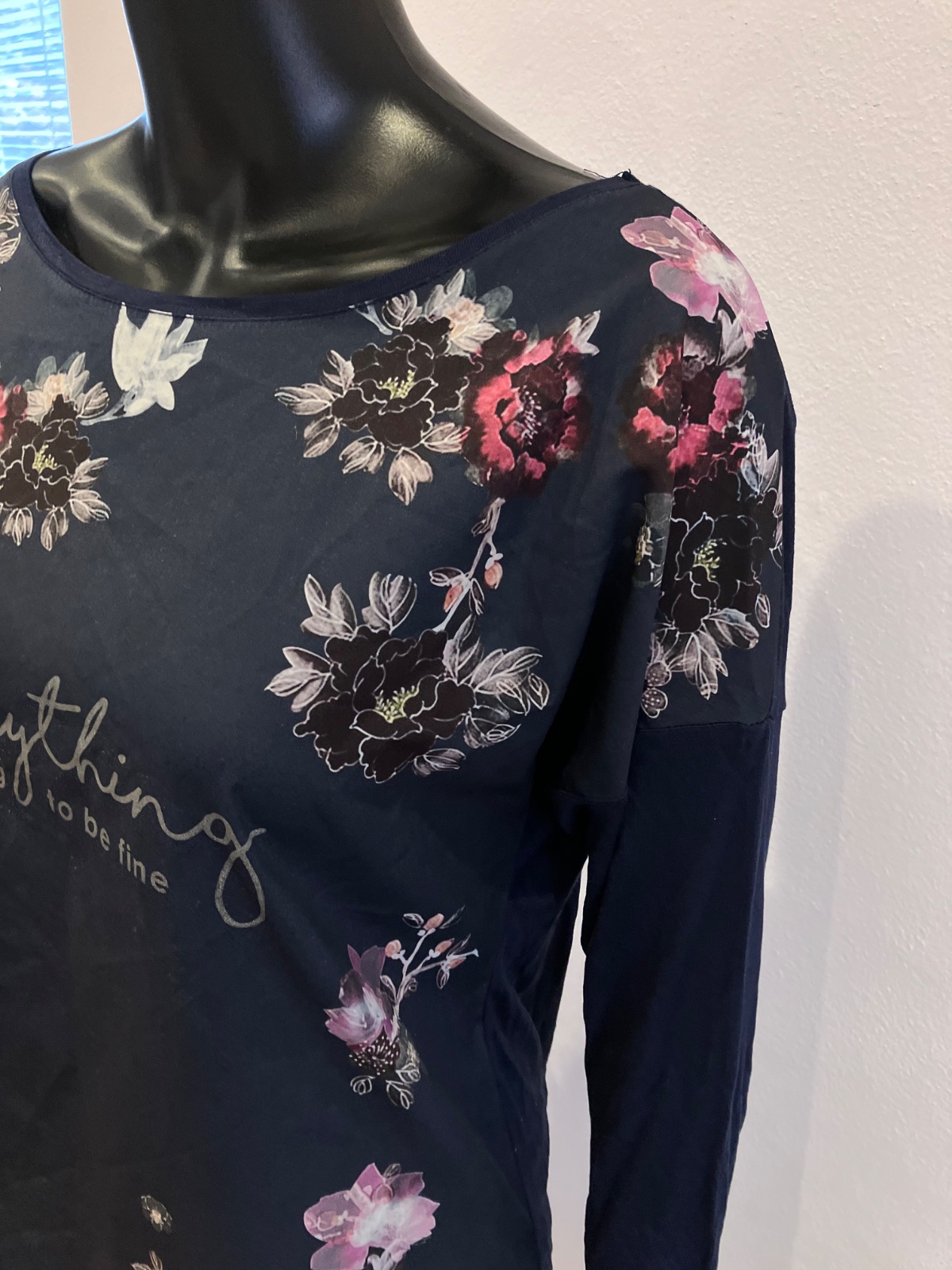 Dámska kvetovaná blúzka s trojštvrťovým rukávom, elastická, tenká, materiál 100%viskóza 100%polyester.