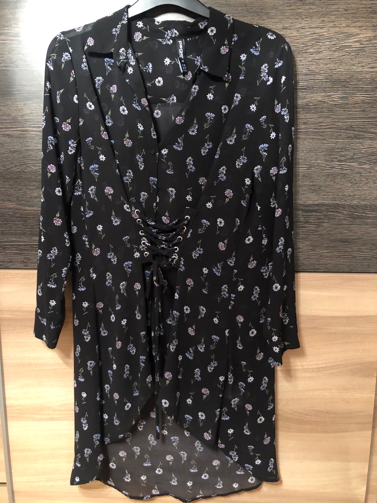 Bluzka cierna s kvetmi vzadu predlzena 42
