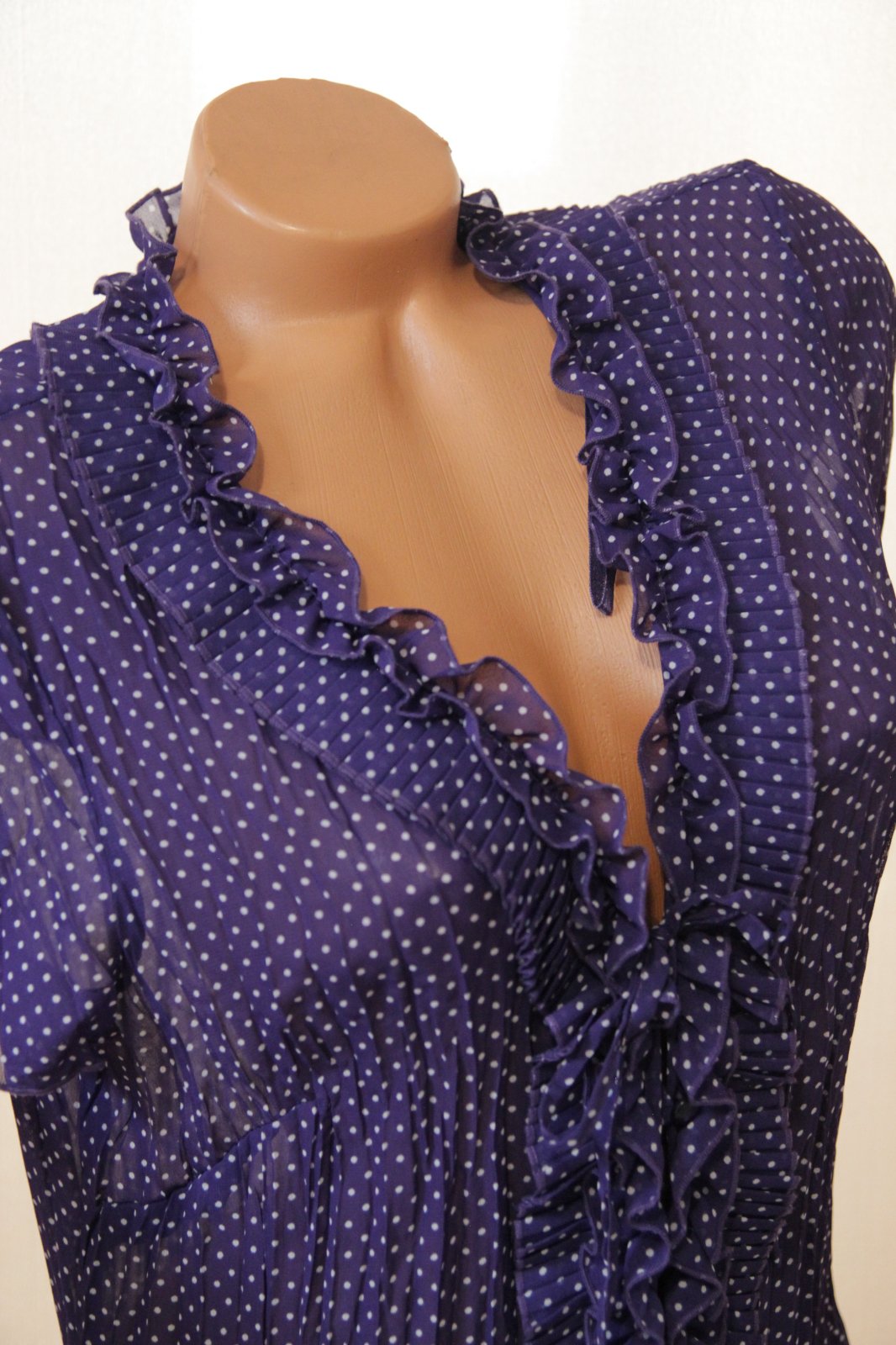 Modro fialová bodkovaná blúzka s volánmi. Veľkosť M/L.
