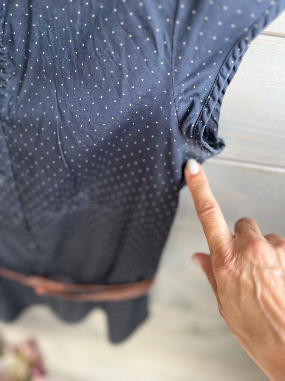 Krasna elastickakošieľka,jemne flaky pod pazuchami od parfemu.