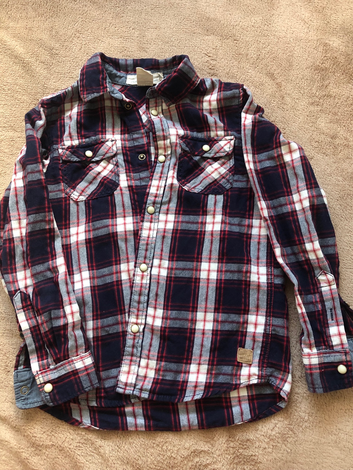 Chlapčenská menčestrová košeľa veľk. 128. Rozmer pod pazuchami cca 50cm, dĺžka rukáva od pleca cca. 40cm.