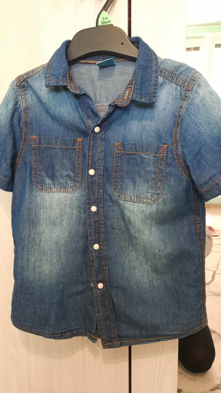 Príležitostne nosená košeľa, v top stave. Je to kombinácia tmavomodrej a bielej farby. Biely golier a rukávy veľmi pekne vyniknú. Pise veľkosť 116, ale je skôr menšia. V prípade záujmu premeram.