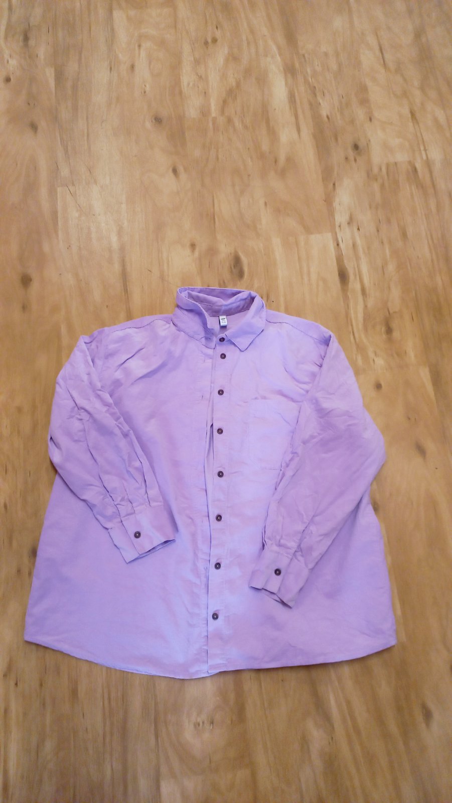 Košeľa z jemného menšestru, príjemná tenká. Šírka 60 cm, dĺžka 72 cm. Farba je v skutočnosti jemná, lentilková. Nosiť sa môže aj ako oversize kúsok. Malý fliačik v dolnej časti, no dnes sú už na to špeciálne prostriedky, neskúšala som to čístiť, košeľa je už veľká, preto ju posúvam ďalej. ZN: EVER.ME